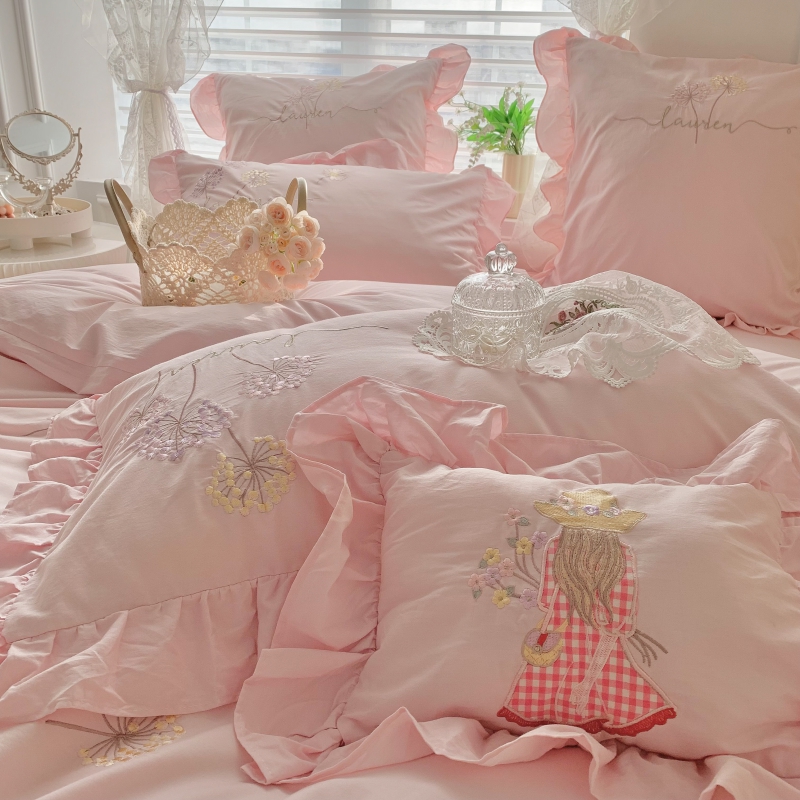 2025新款A类60S全棉水洗棉刺绣花边四件套 梦幻佳人