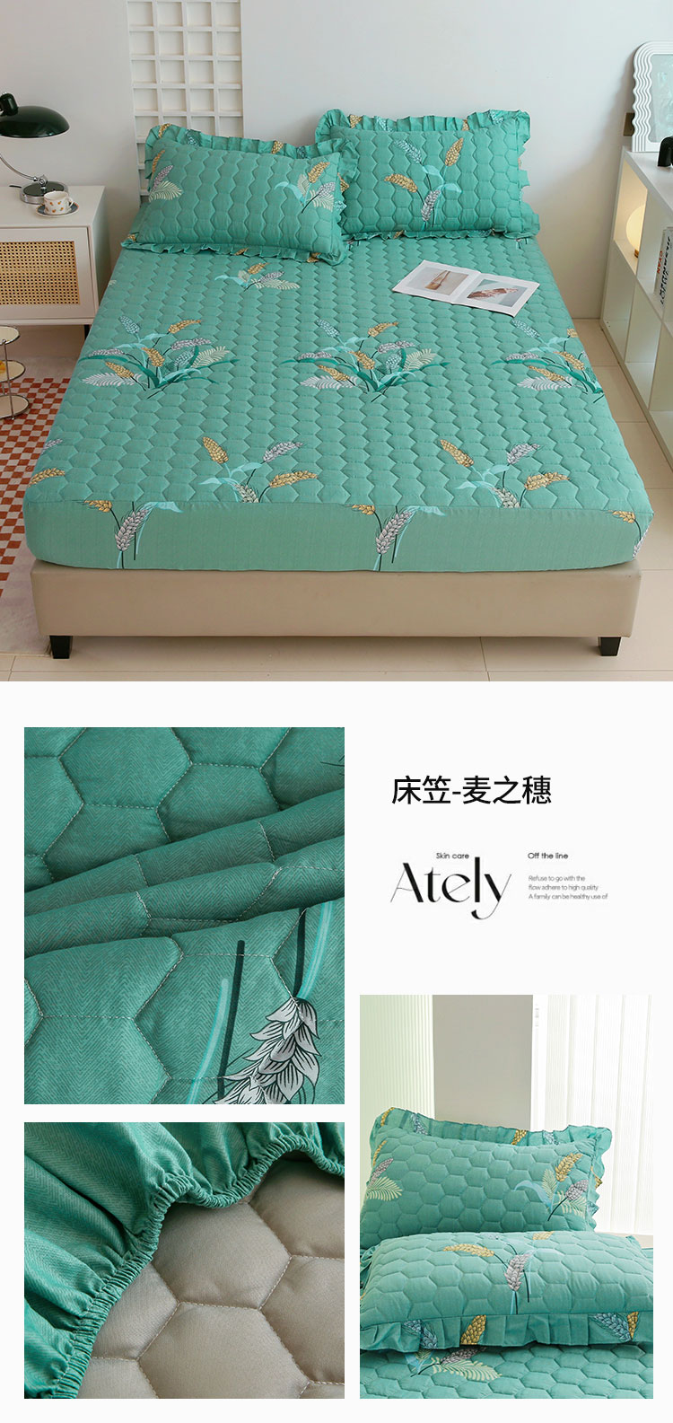• 91家纺网 家纺一手货源 找家纺 情煊 2023新款全棉夹棉纯色印花床笠款(可定制尺寸) 床笠-麦之穗