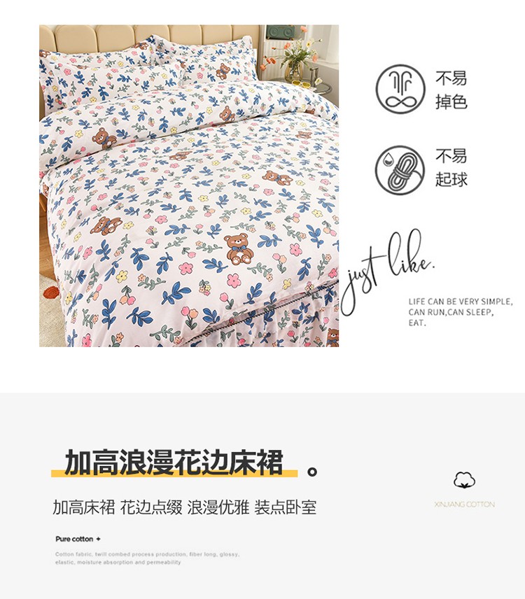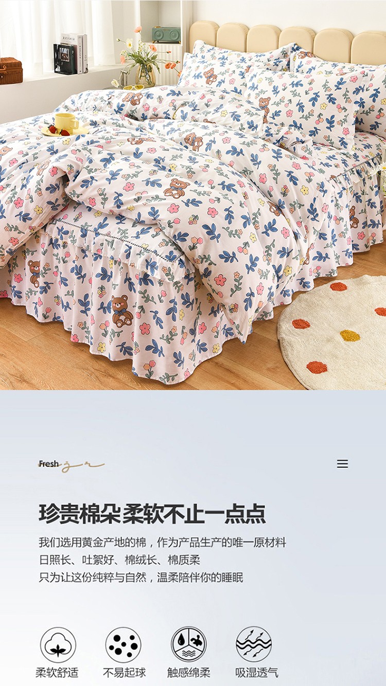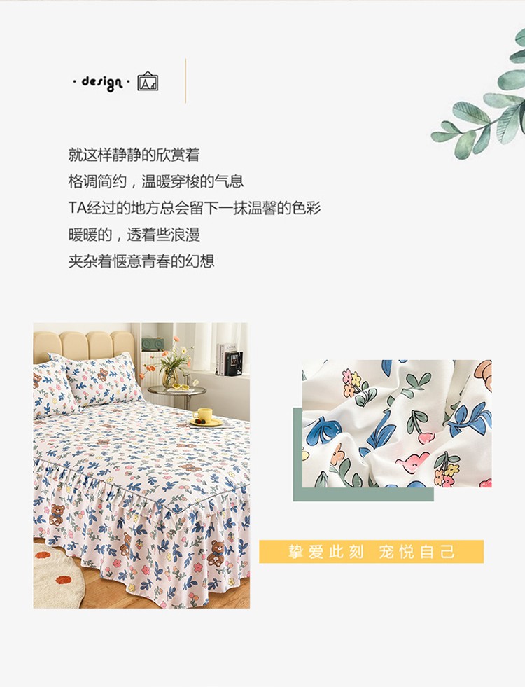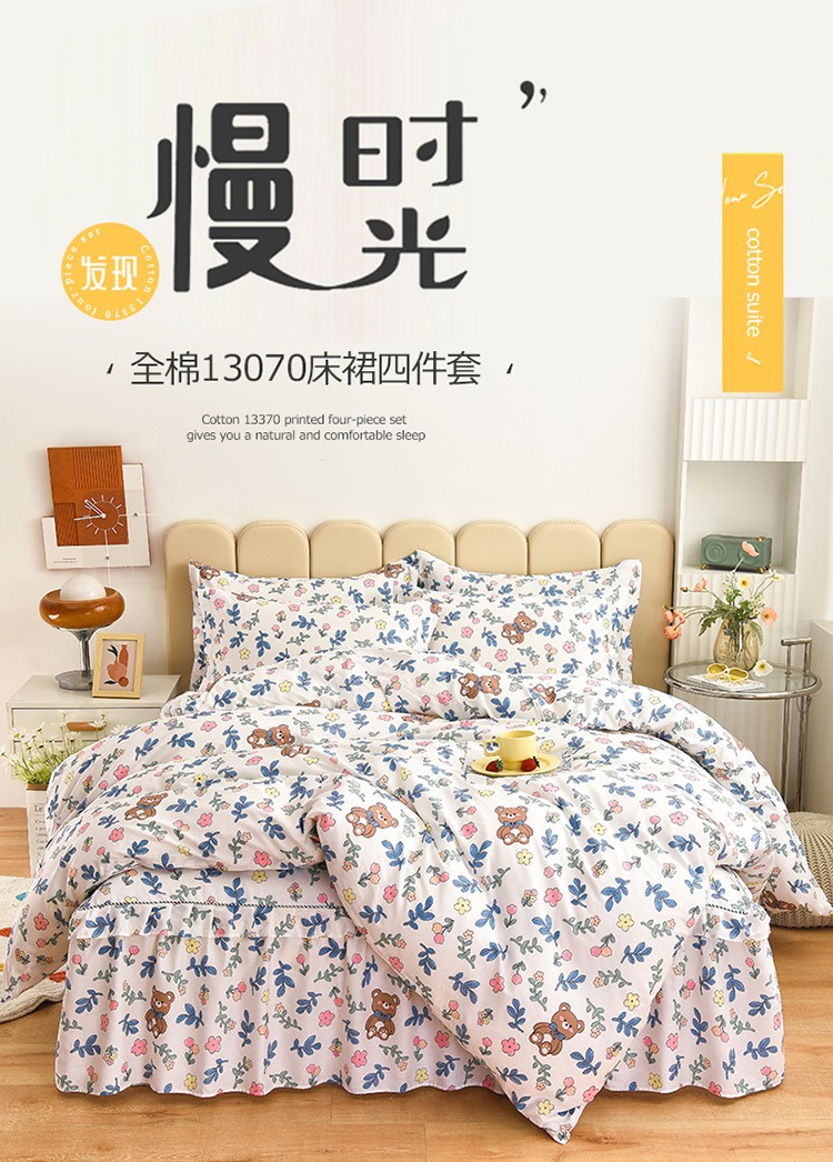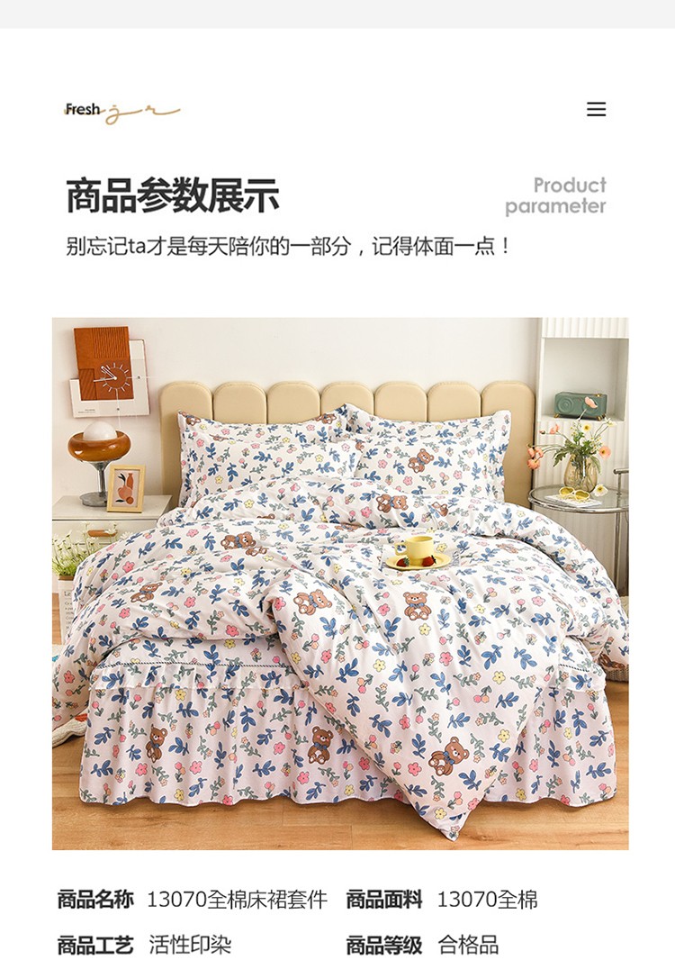 当前位置: 91家纺网 > 商品网购 > 床品套件 > 四件套 > 全棉普通四件套 > 名优 2023新款13070田园风床裙四套件 蓓暖初妆