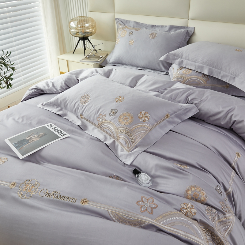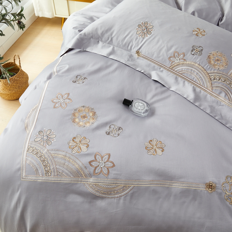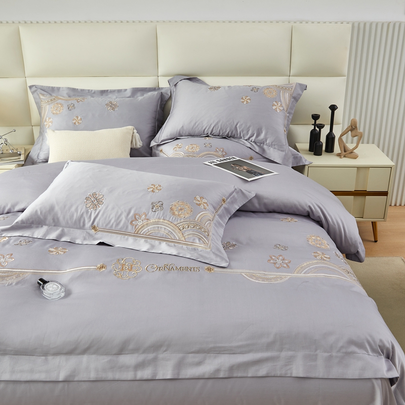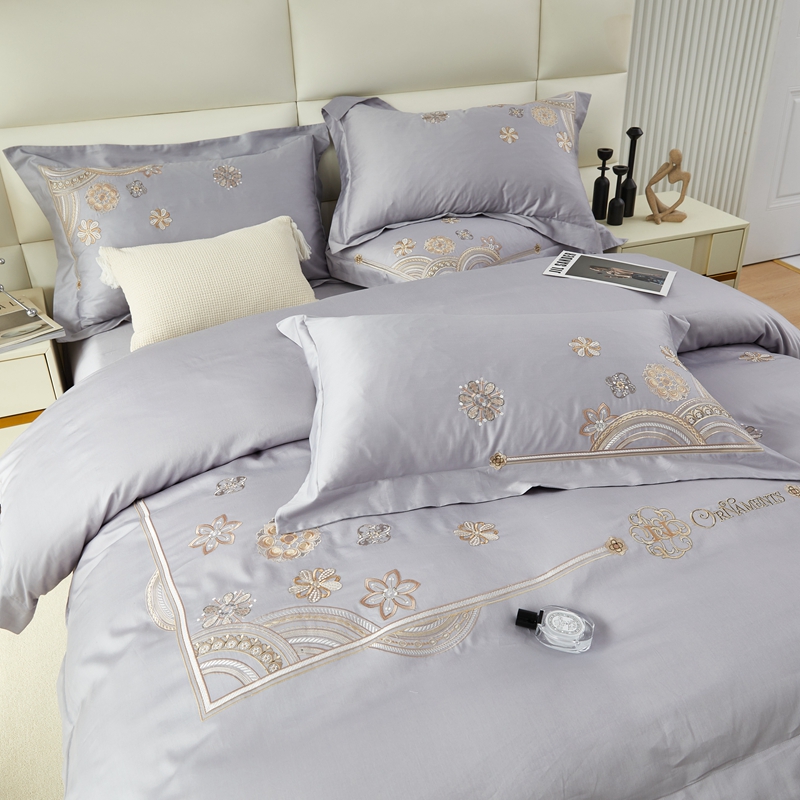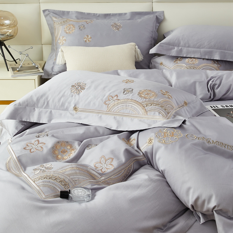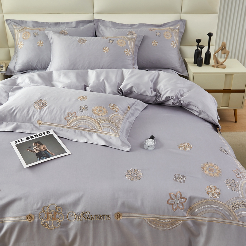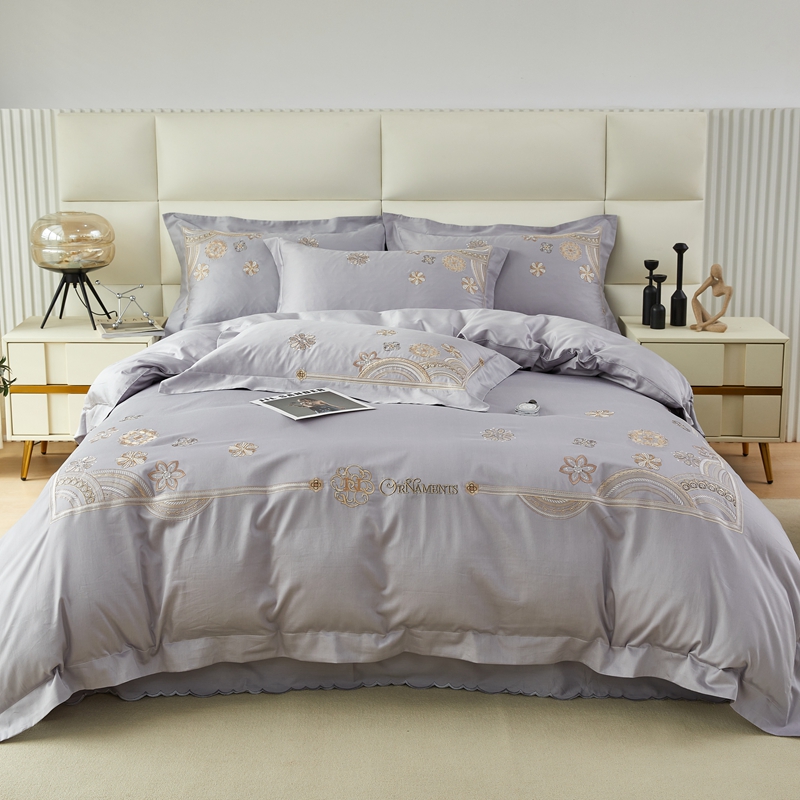 星尚 2023新款100支长绒棉绣花四件套-慕颜 绅士灰