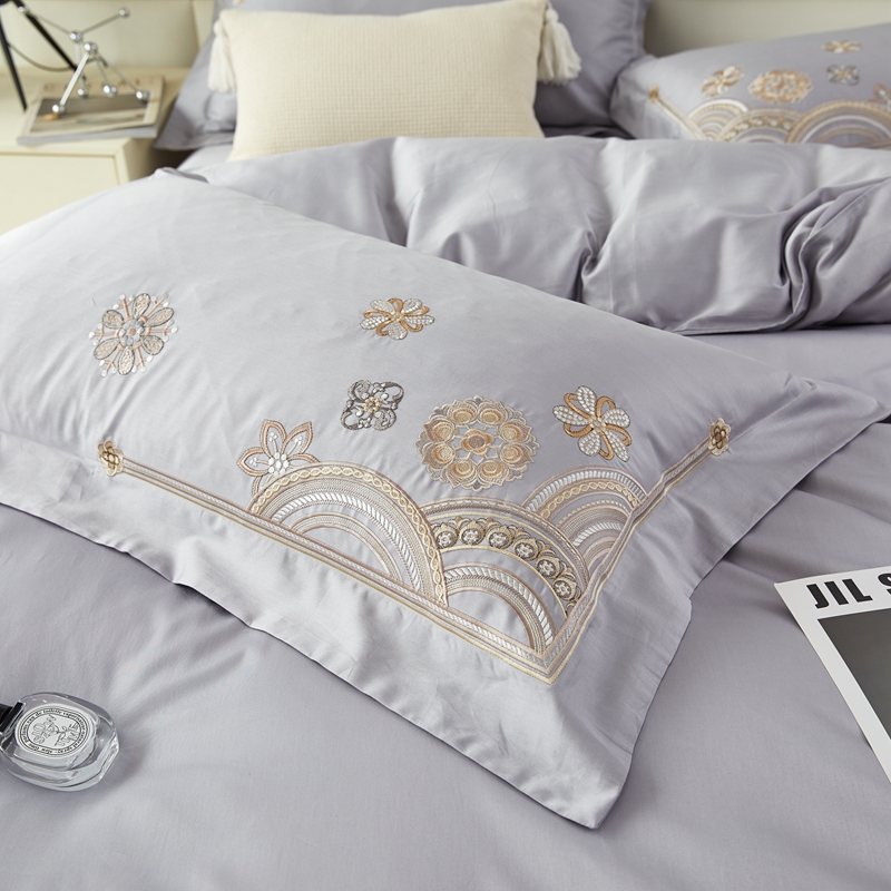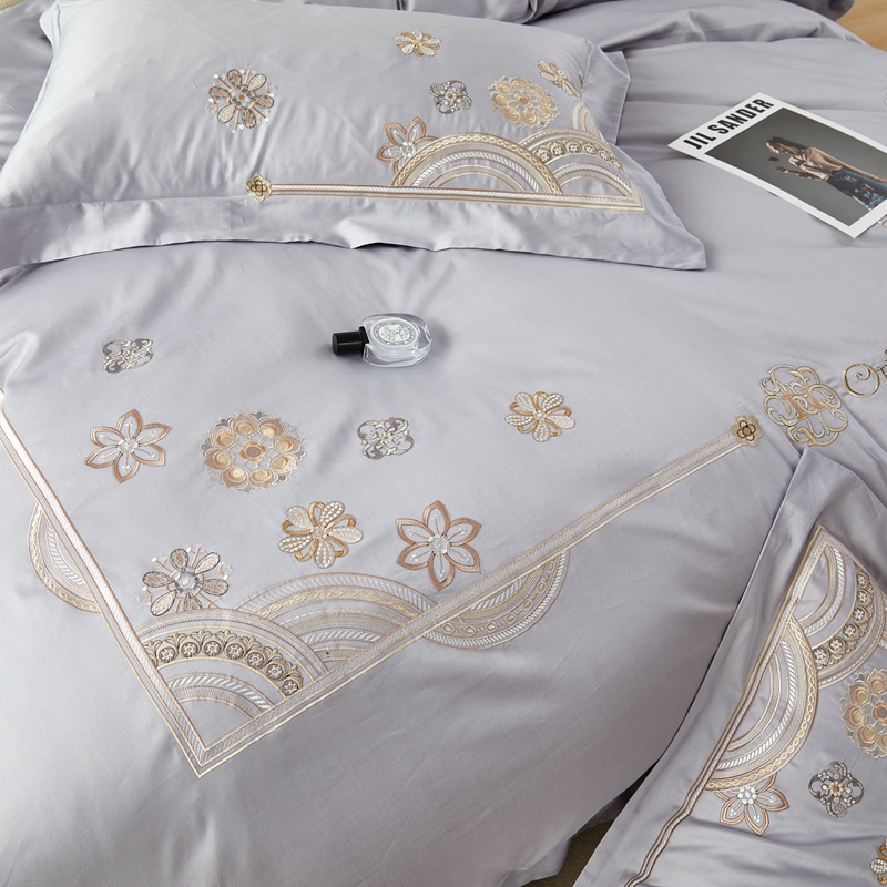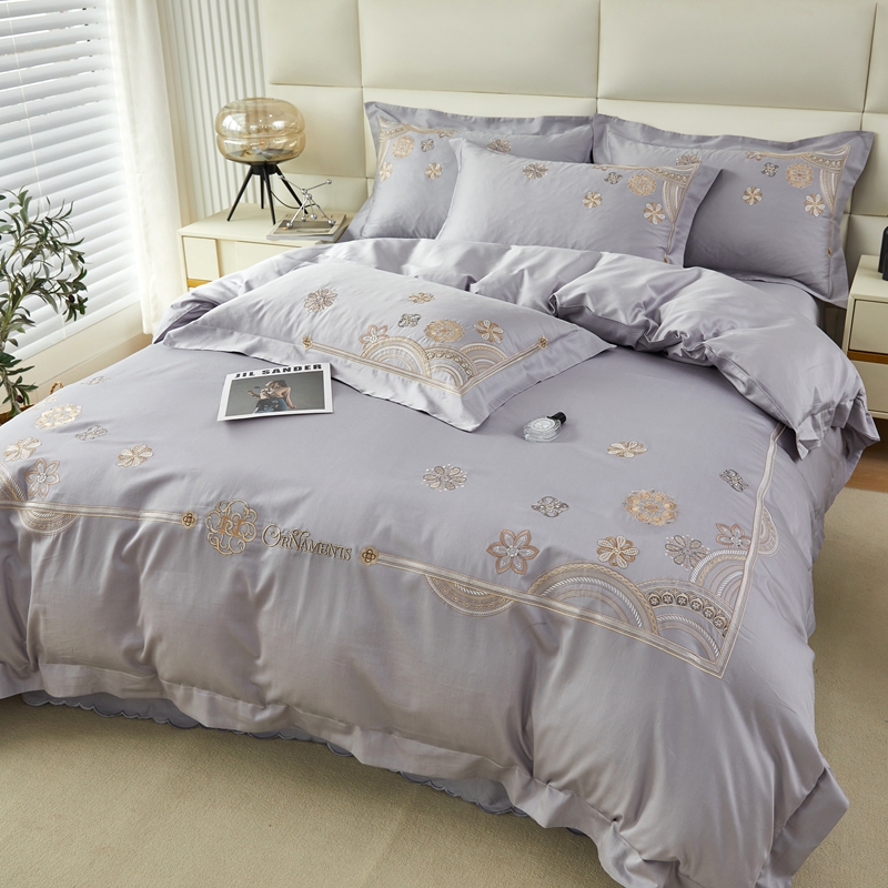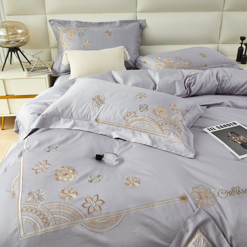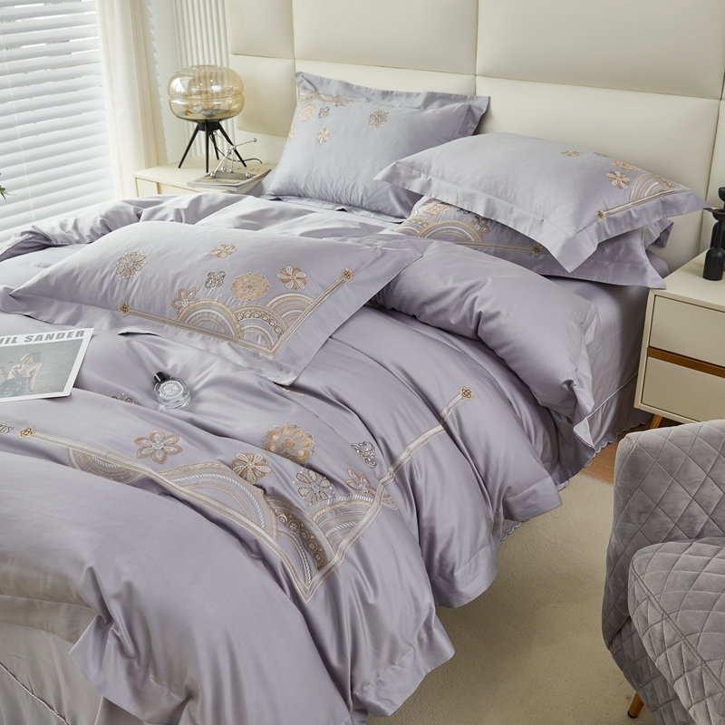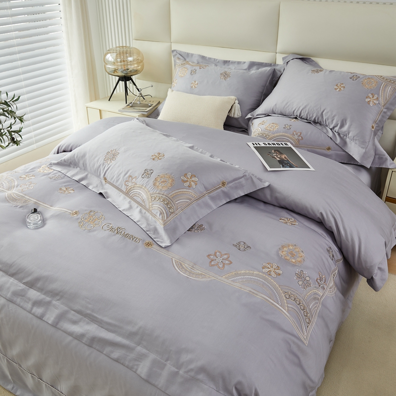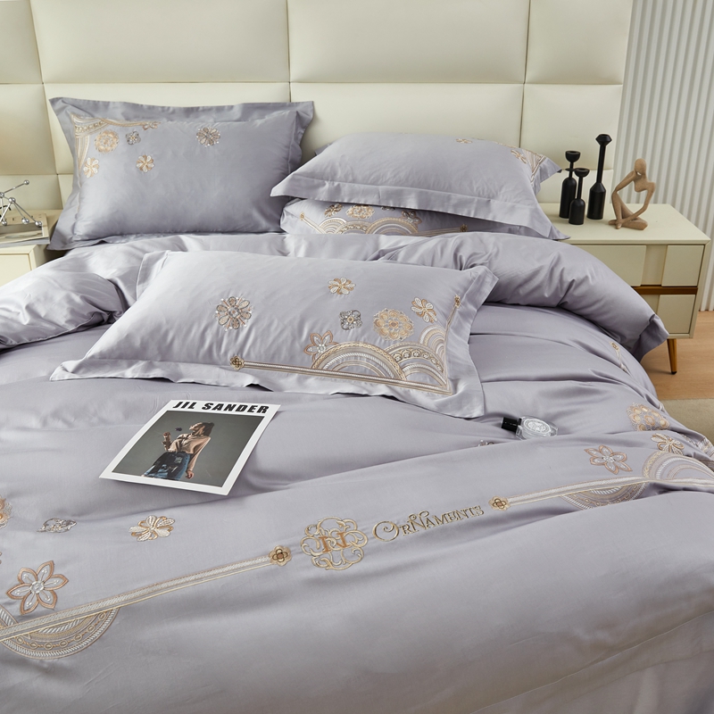 星尚 2023新款100支长绒棉绣花四件套-慕颜 绅士灰