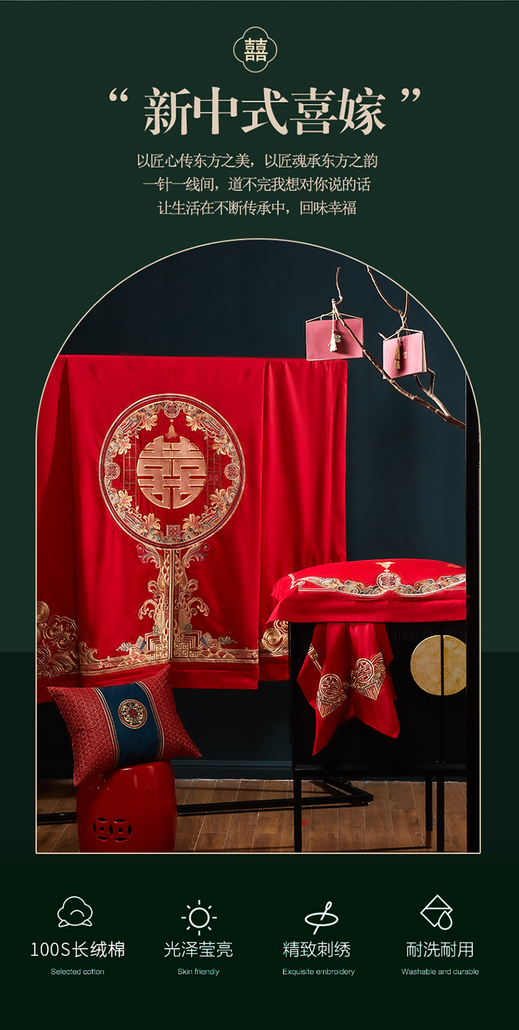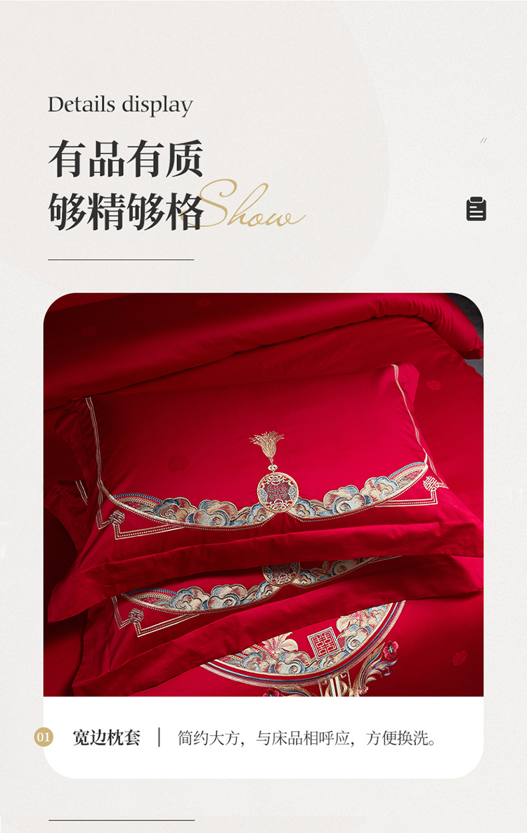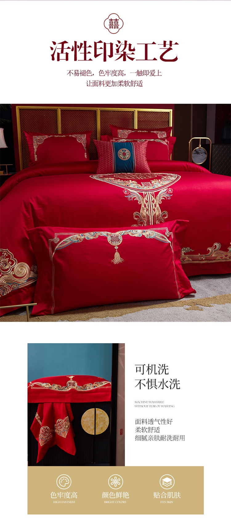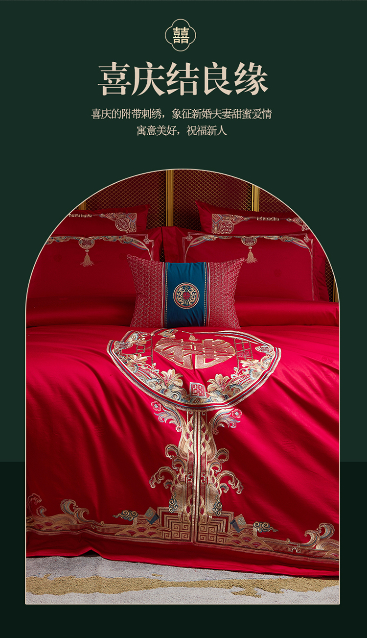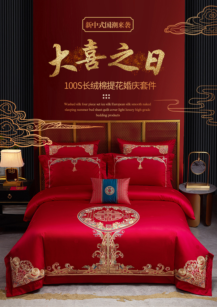 当前位置: 91家纺网 > 商品网购 > 床品套件 > 四件套 > 婚庆四件套 > 高大尚婚庆馆 2023新款双股长绒棉提花系列 大喜之日