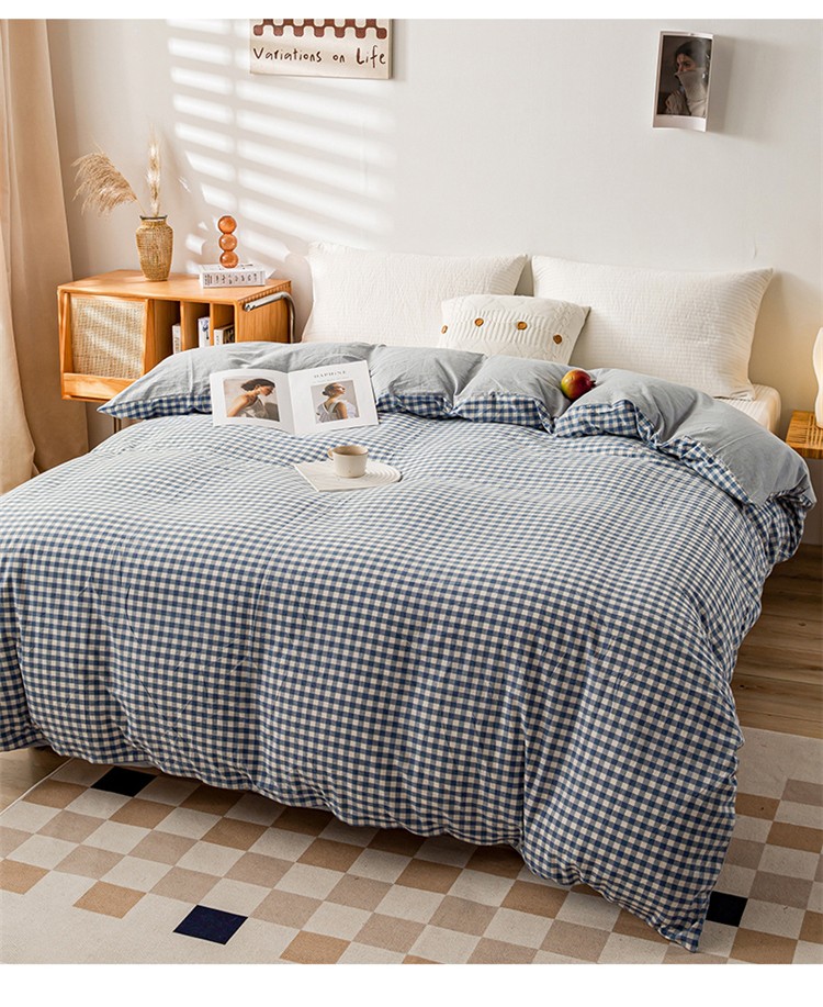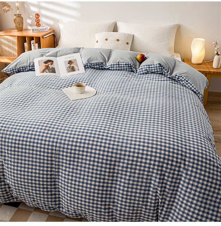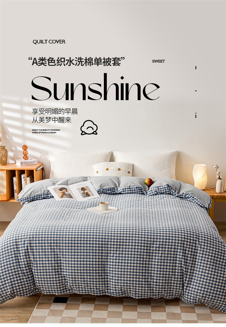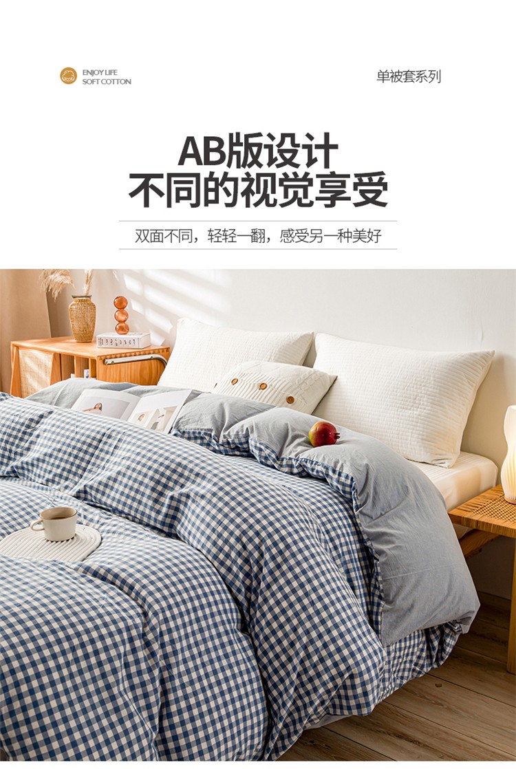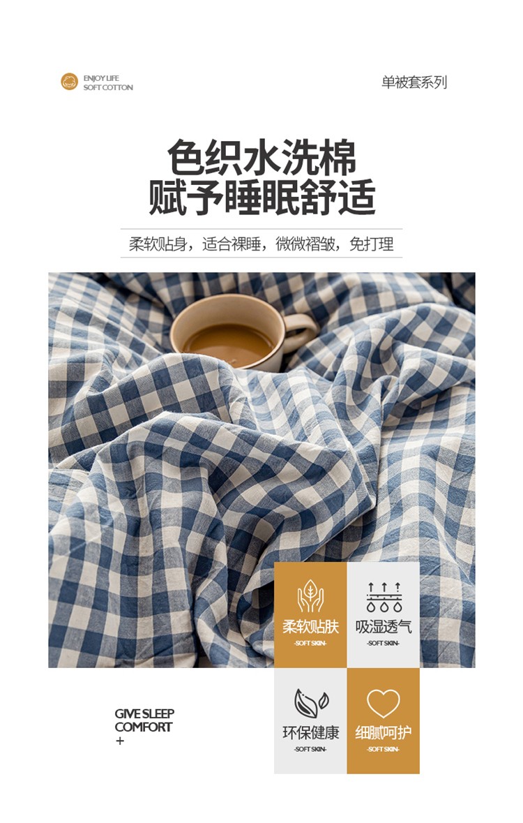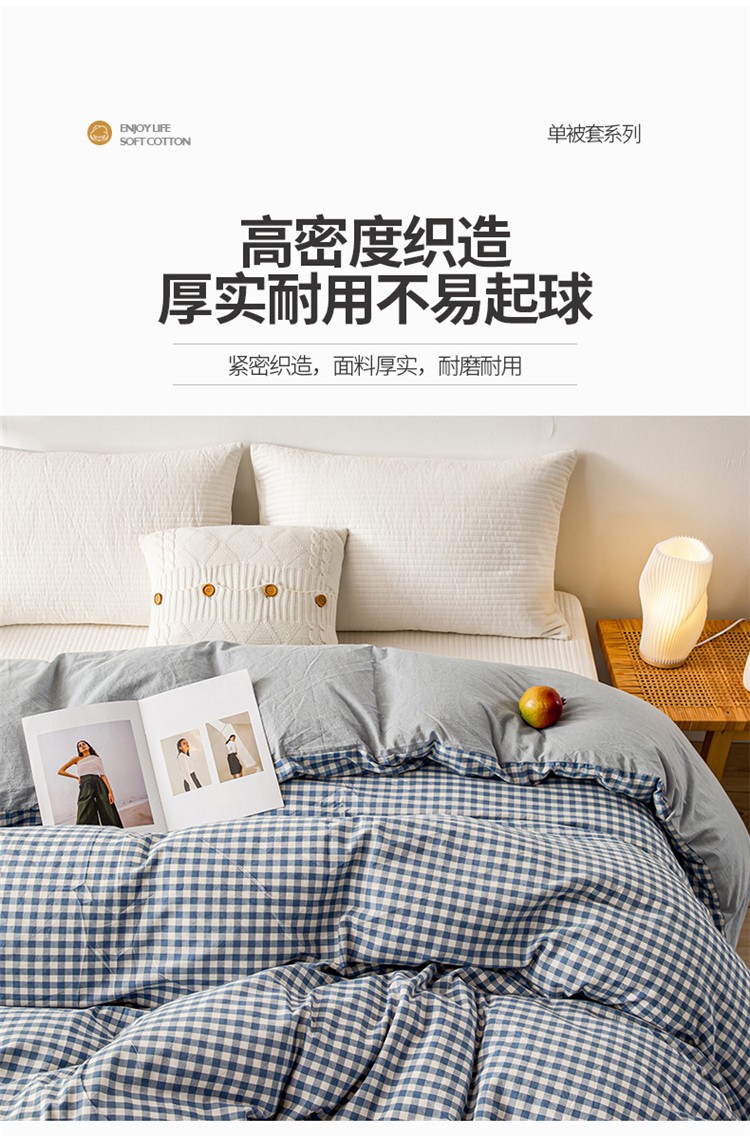 九沐良品 新款A类色织水洗棉四件套单被套 浅蓝小格