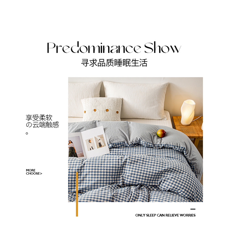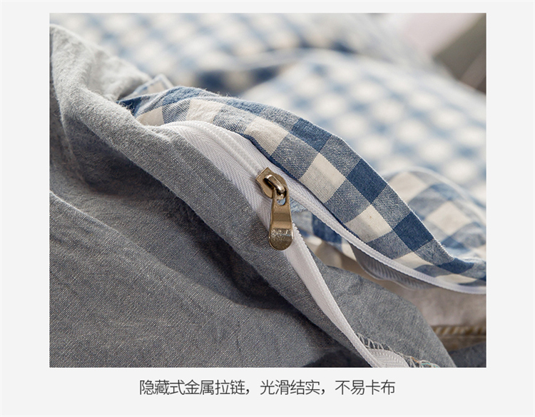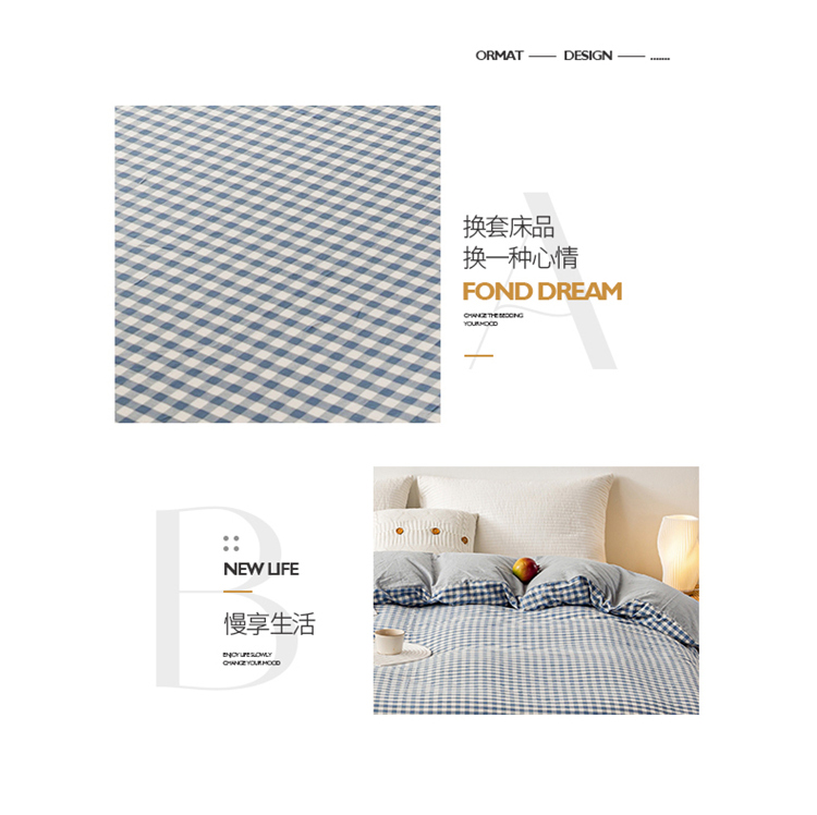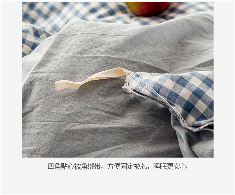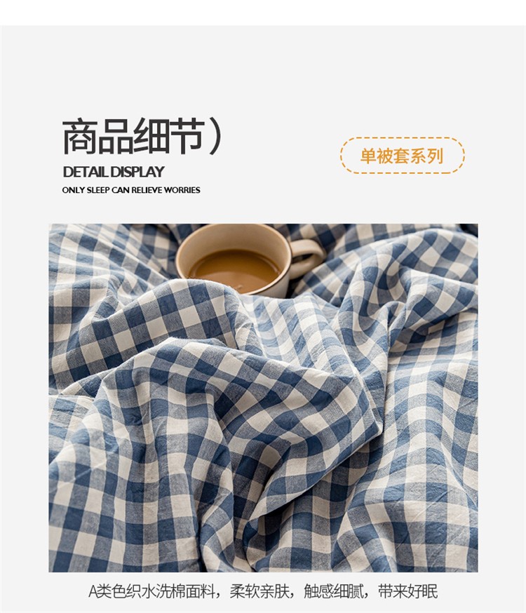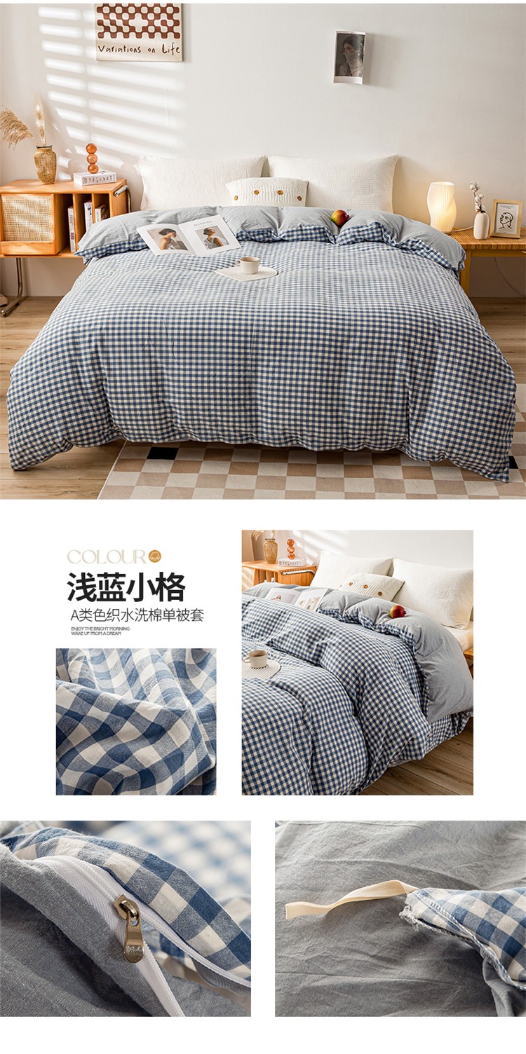商品名称:九沐良品 新款A类色织水洗棉四件套单被套 浅蓝小格