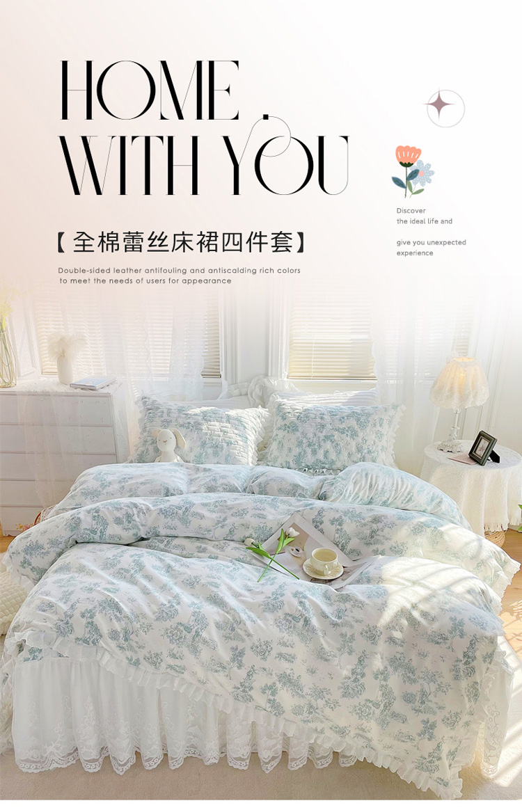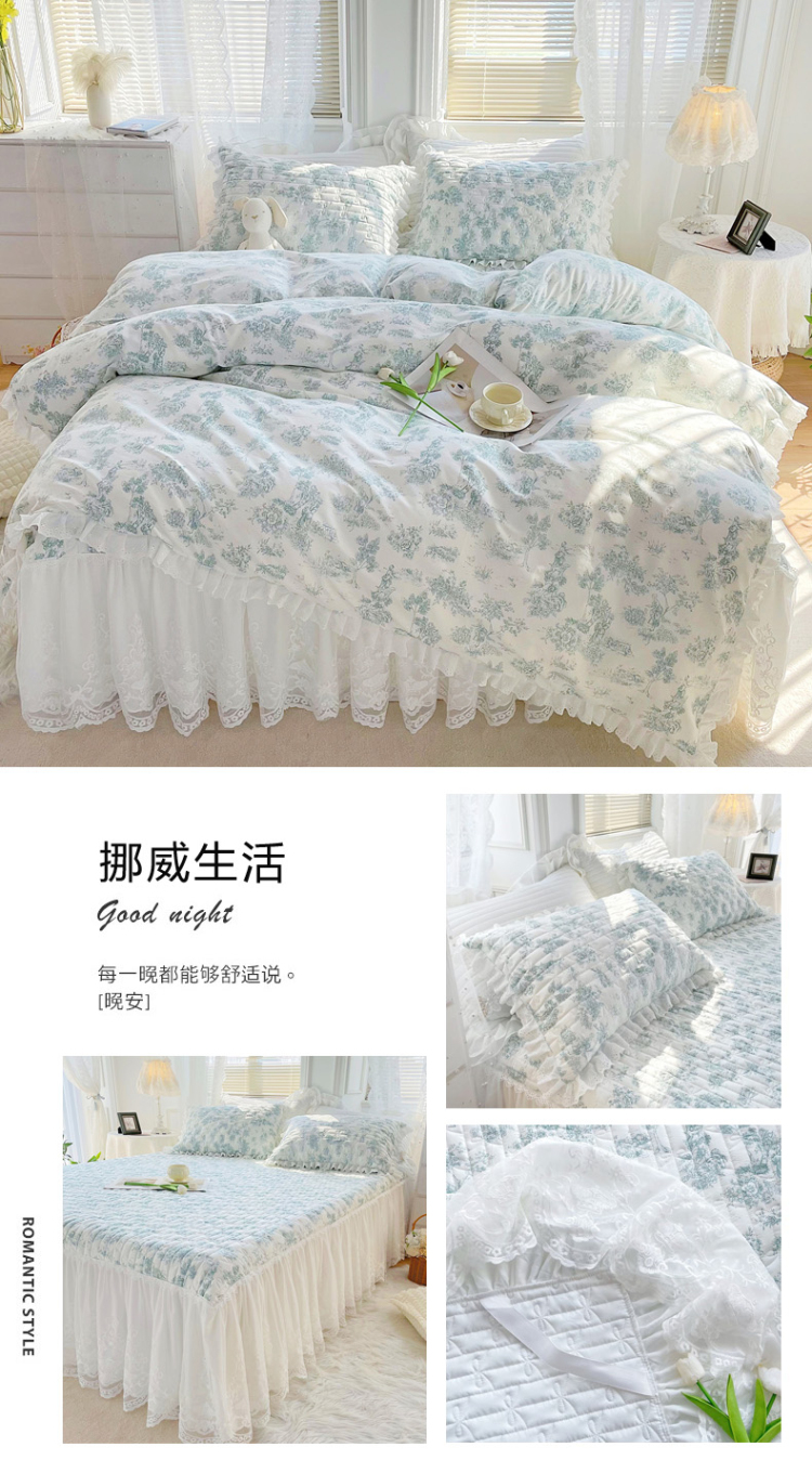 当前位置: 91家纺网 > 商品网购 > 床品套件 > 四件套 > 全棉普通四件套 > 菊上2023新款全棉-法式风蕾丝床裙四件套 3.挪威生活