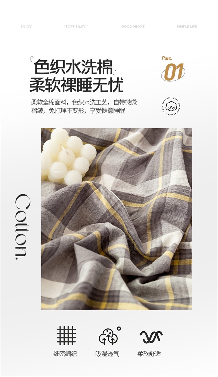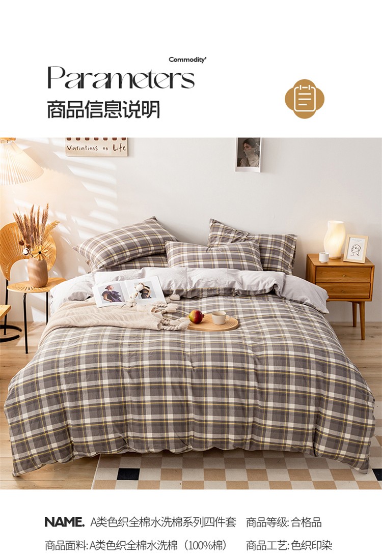 当前位置: 91家纺网 > 商品网购 > 床品套件 > 四件套 > 水洗棉四件套 > 九沐良品 新款A类色织水洗棉四件套 莫妮卡灰