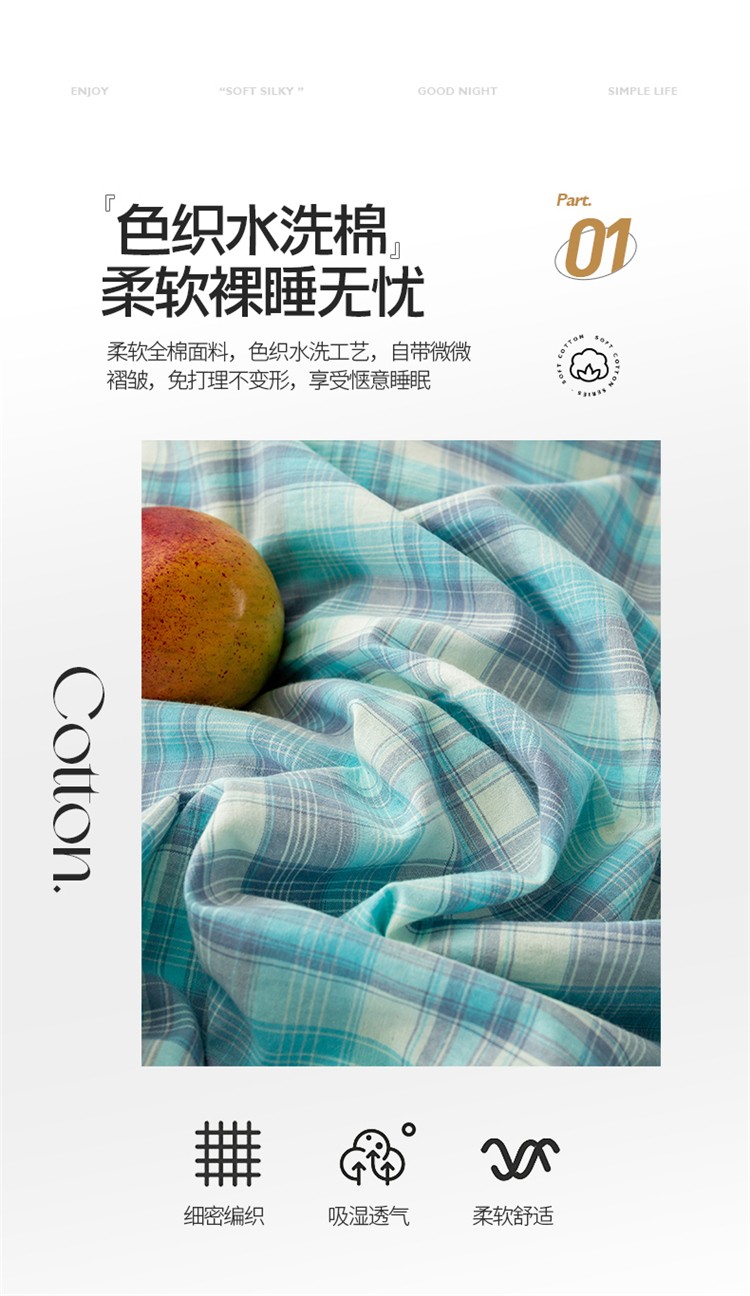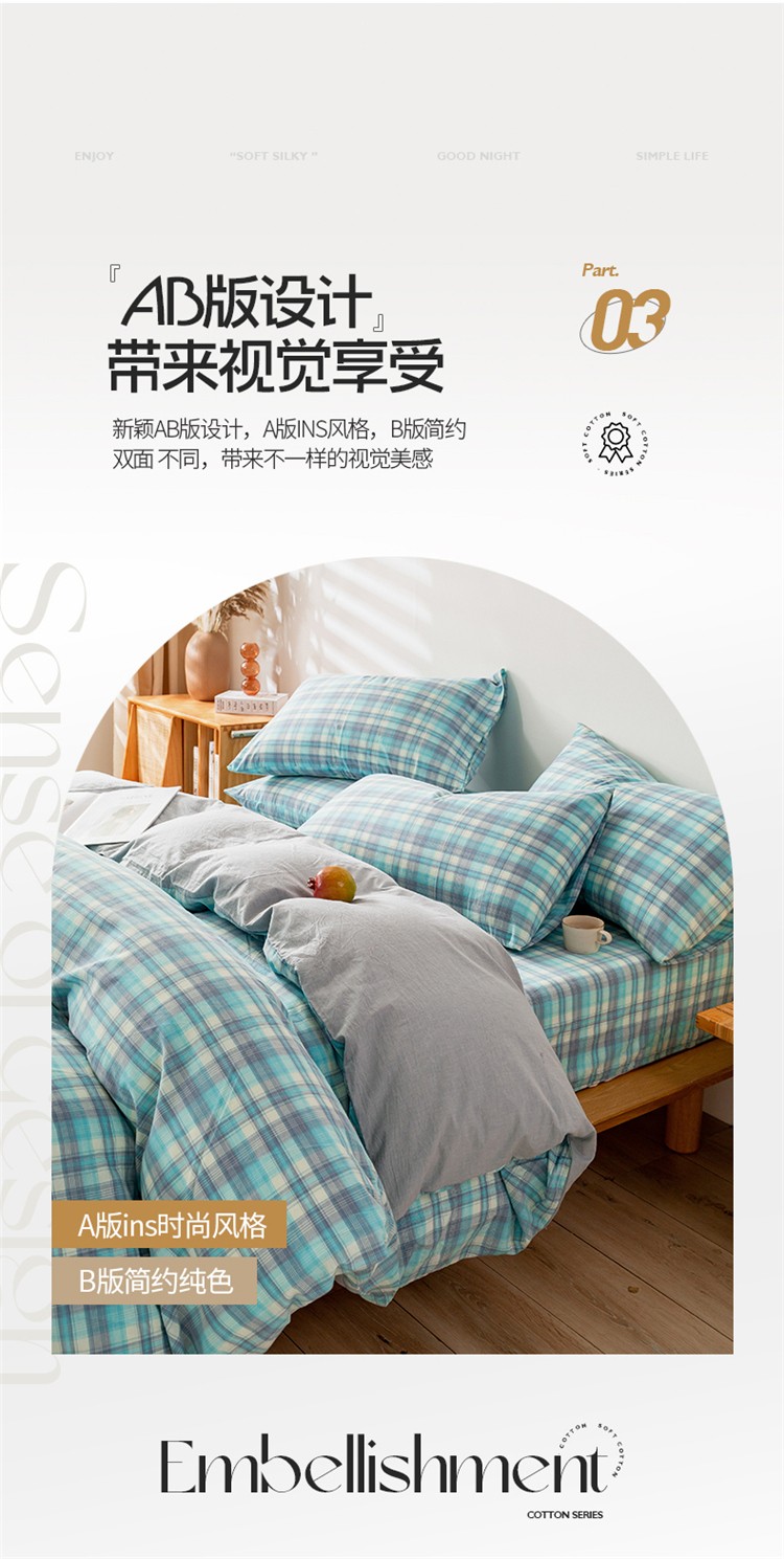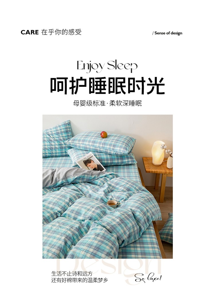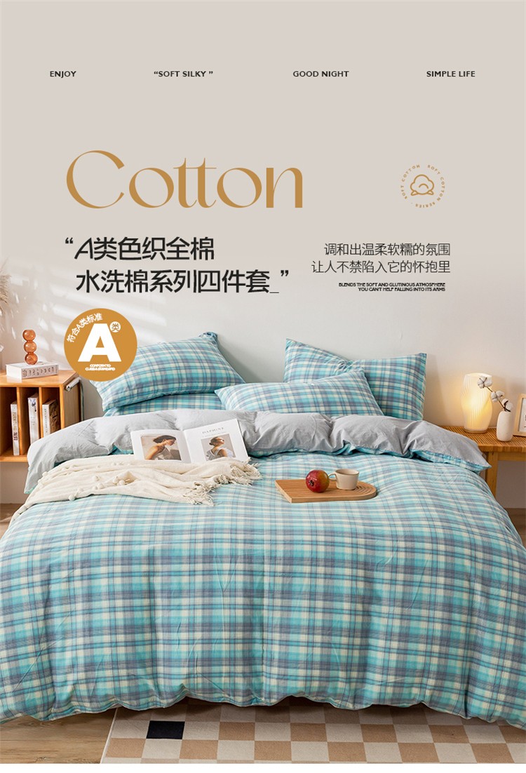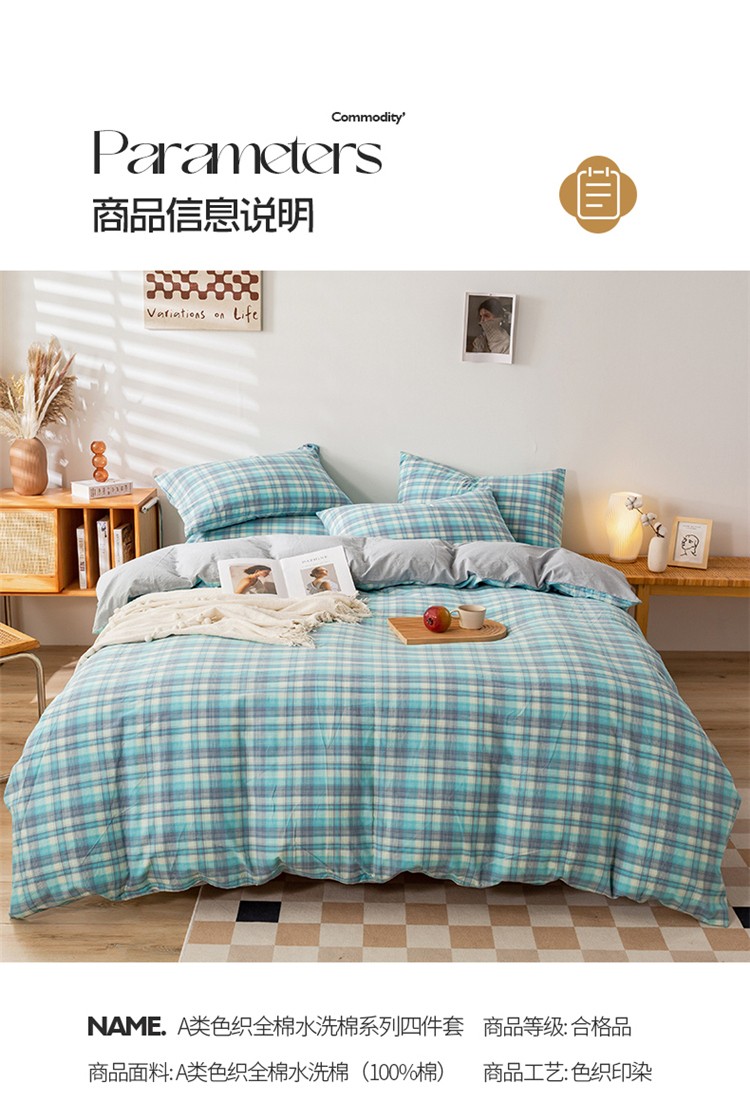 当前位置: 91家纺网 > 商品网购 > 床品套件 > 四件套 > 水洗棉四件套 > 九沐良品 新款A类色织水洗棉四件套 星空绿