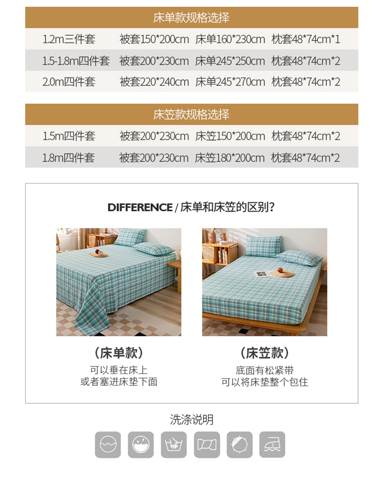 1.2m床笠款三件套 | ¥88.00 |