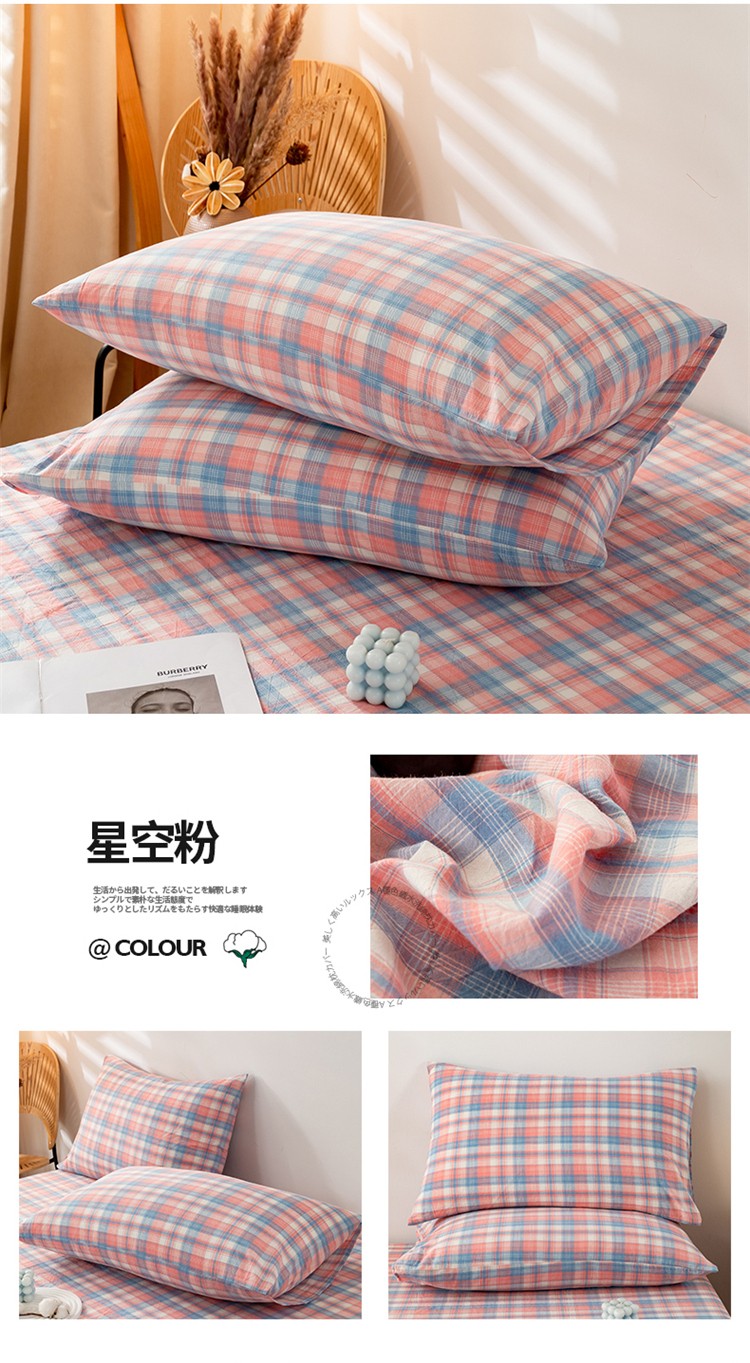 九沐良品 新款A类色织水洗棉四件套-单品枕套 星空粉