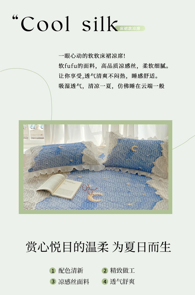 商品名称:慕澄 2023新款大版雪纺床裙款乳胶凉席系列 星辰