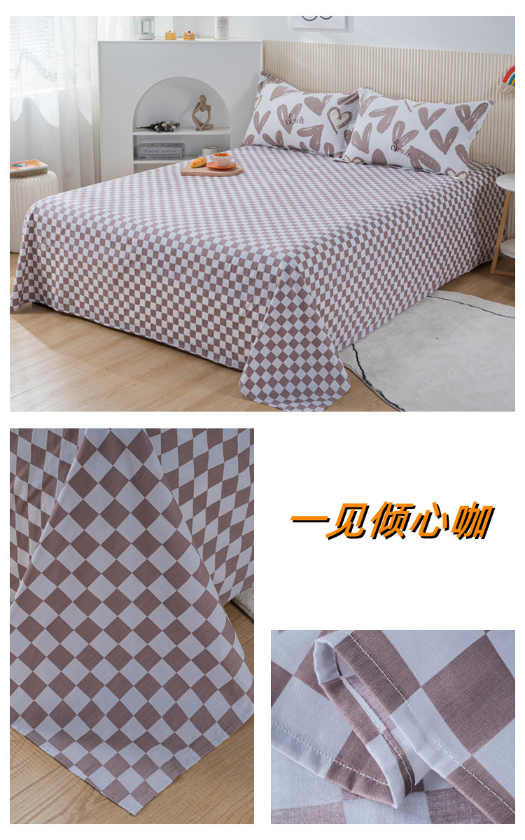 商品名称:茗婷2025春夏新款纯棉印花单品床单 一见倾心咖