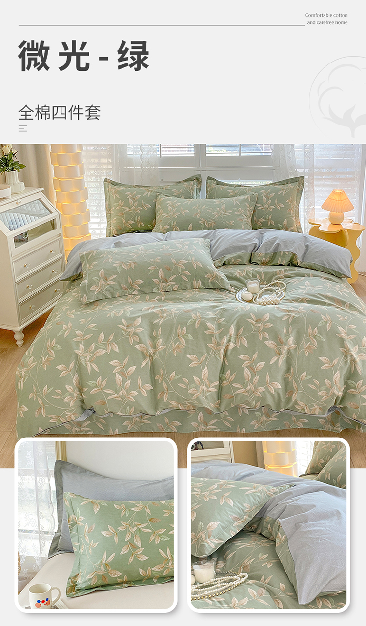 当前位置: 91家纺网 > 商品网购 > 床品套件 > 四件套 > 全棉普通四件套 > 元元 2023新款13372全棉印花四件套 微光-绿