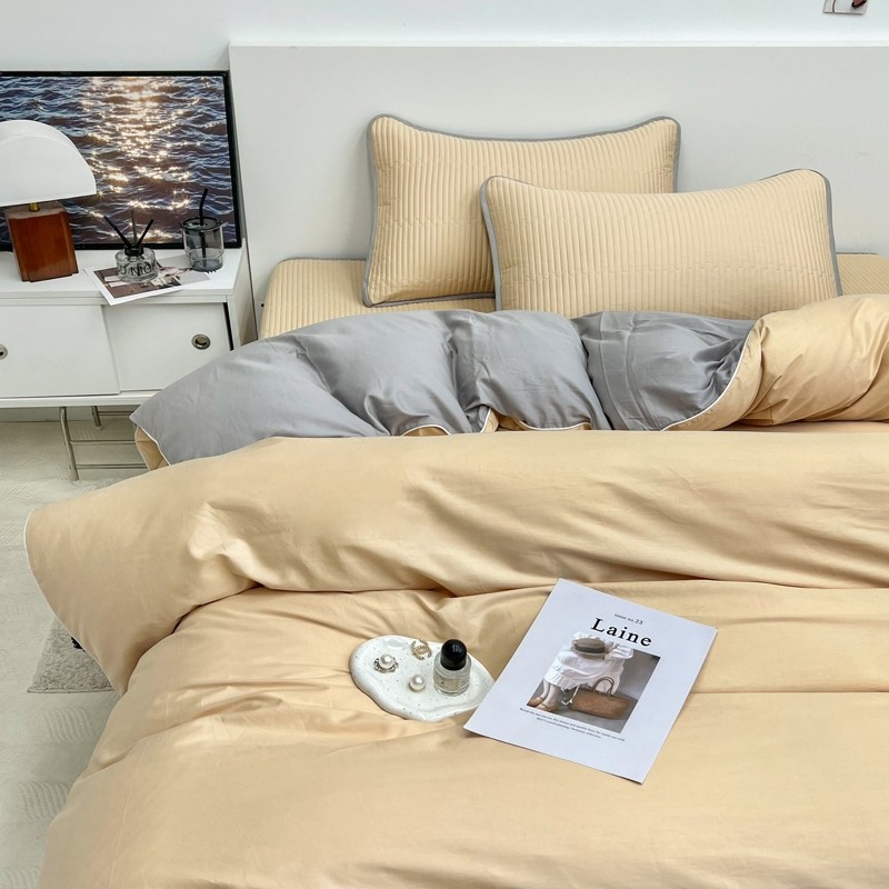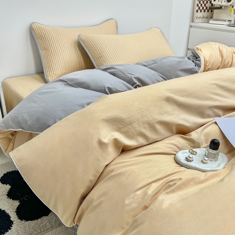 当前位置: 91家纺网 > 商品网购 > 床品套件 > 三件套 > 茉夕 2023新款双面纯棉高温砂洗纯色撞色三件套系列 黄+灰