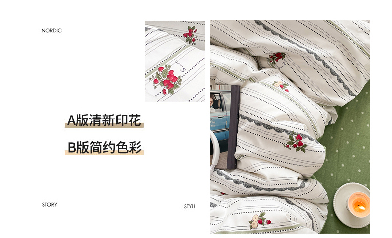 当前位置: 91家纺网 > 商品网购 > 床品套件 > 四件套 > 全棉普通四件套 > 麦伦2023新款40s13372ins小清新全棉四件套第三波 草莓恋人