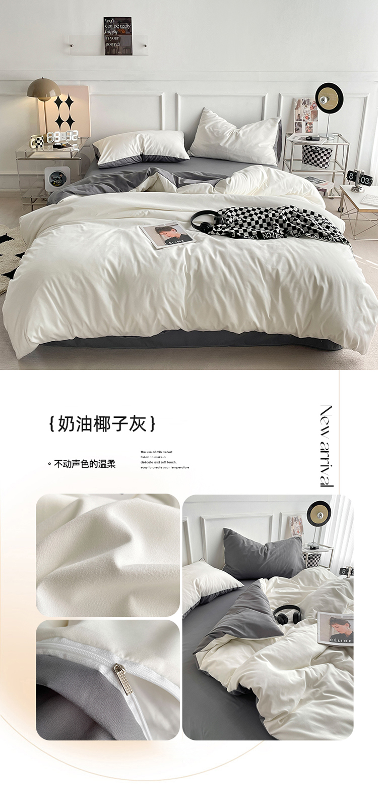 当前位置: 91家纺网 > 商品网购 > 床品套件 > 四件套 > 普通磨毛四件套 > 贝拉梦2023新款105g超级柔软磨毛亲肤棉双拼简约风四件套奶油椰子灰