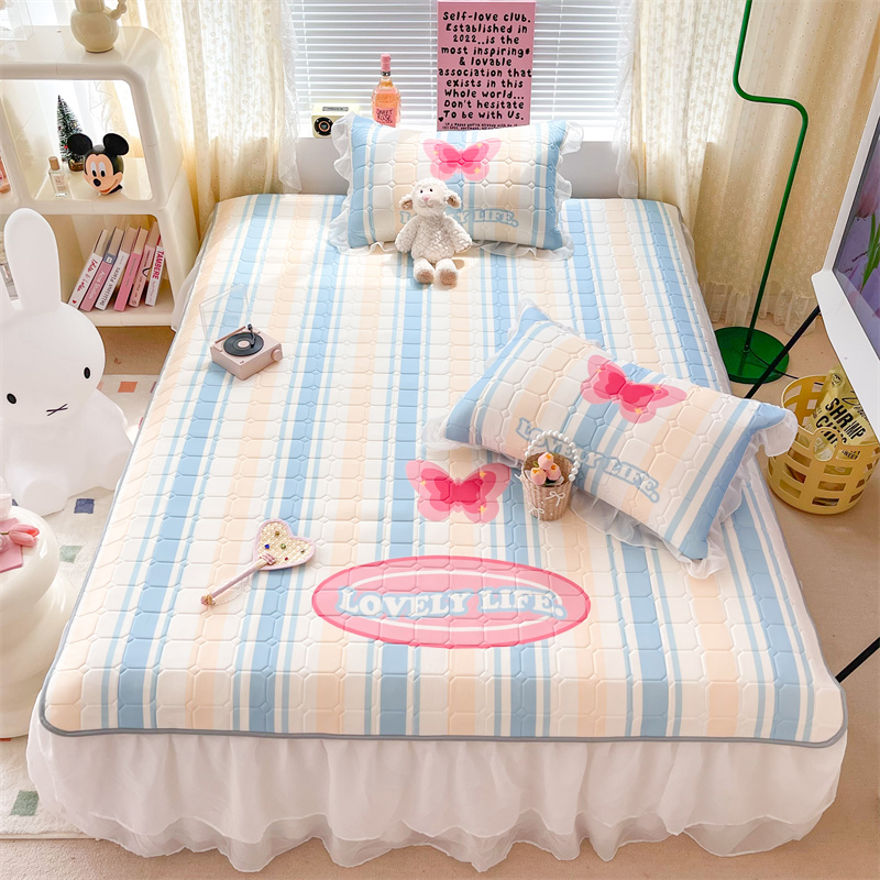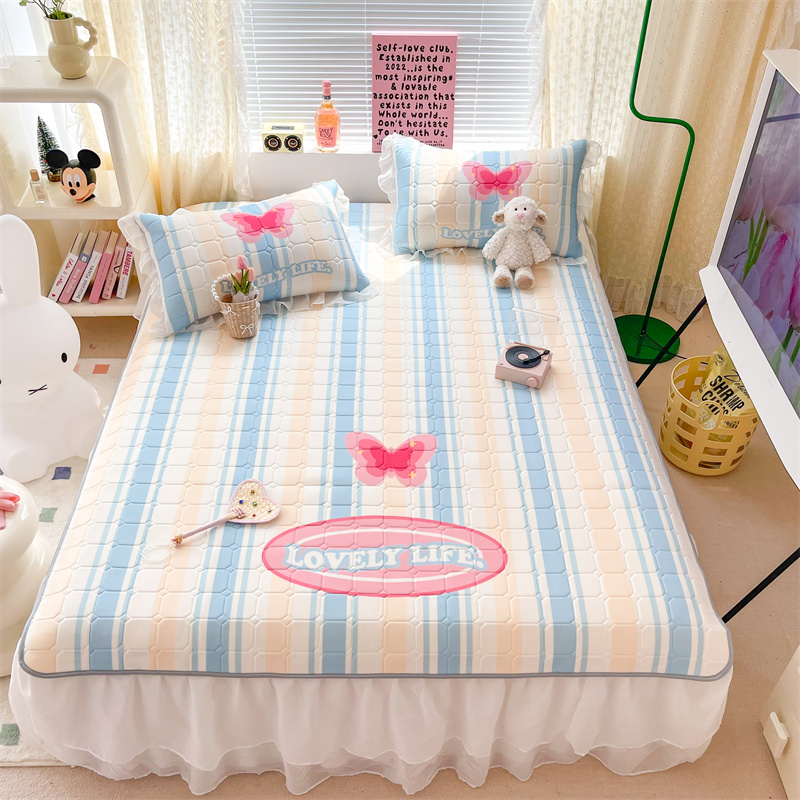 顾里 2023新款0.5仙女双层雪纺纱床裙席 条纹蝶恋