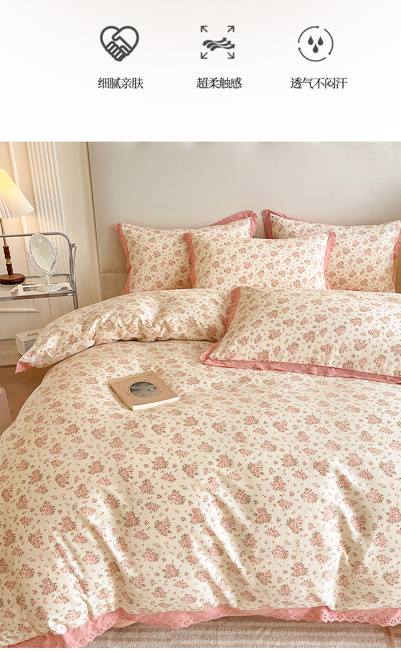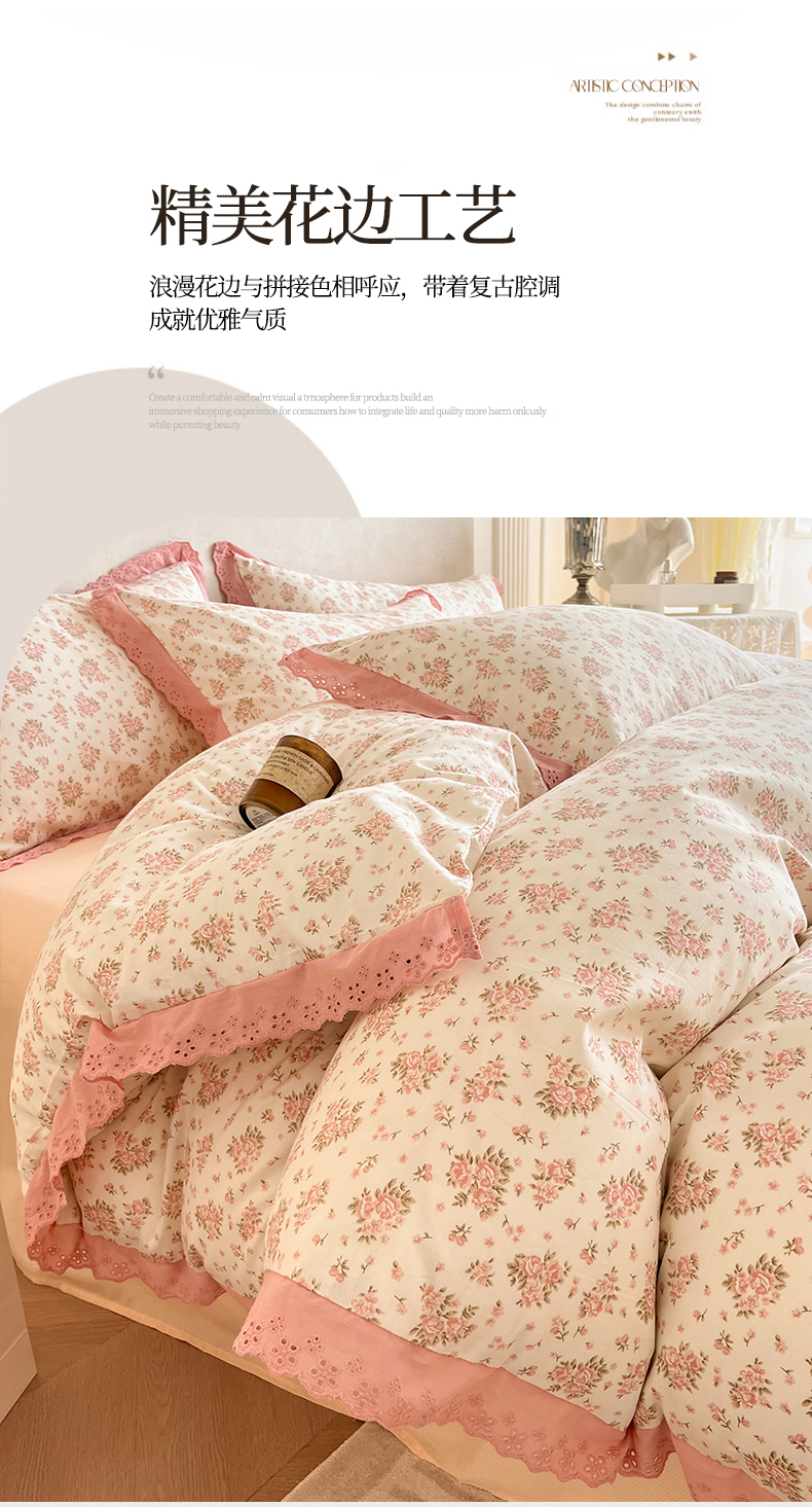 商品名称:蓝邻家纺2023新款复古小清晰花边四件套系列第二批 月光集