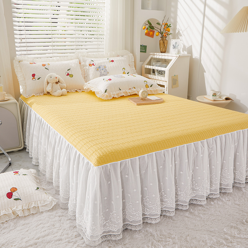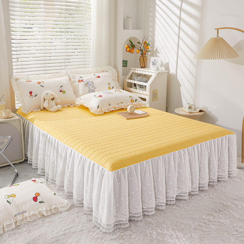 宜凡家纺2023新款A类全棉夹棉床裙三件套 樱桃考拉