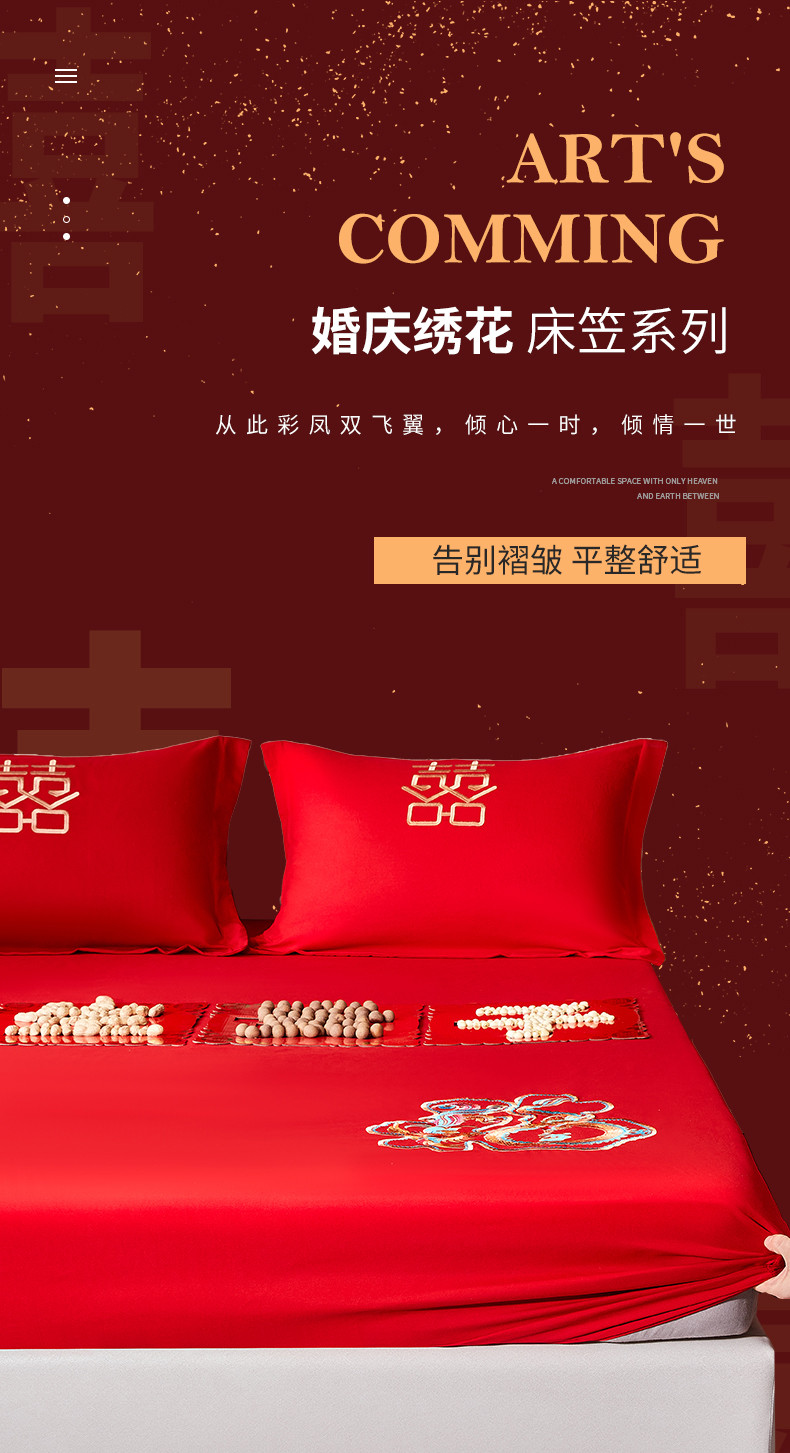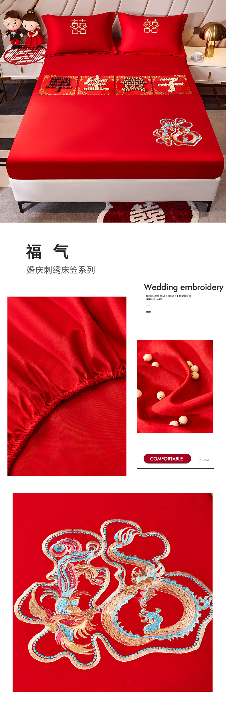 商品名称:玉雅家纺 2025新款婚庆刺绣单品床笠三件套 福气