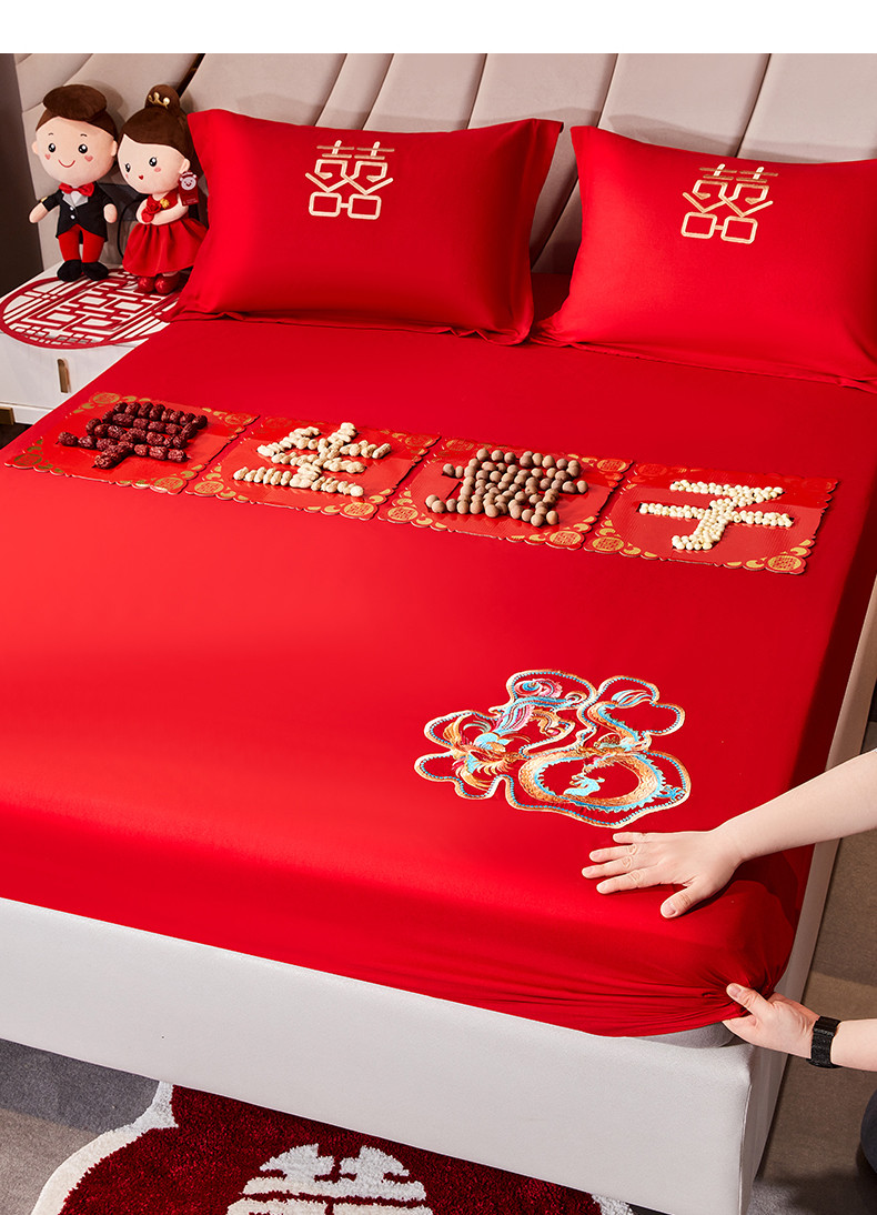 玉雅家纺 2025新款婚庆刺绣单品床笠三件套 福气