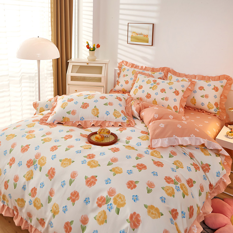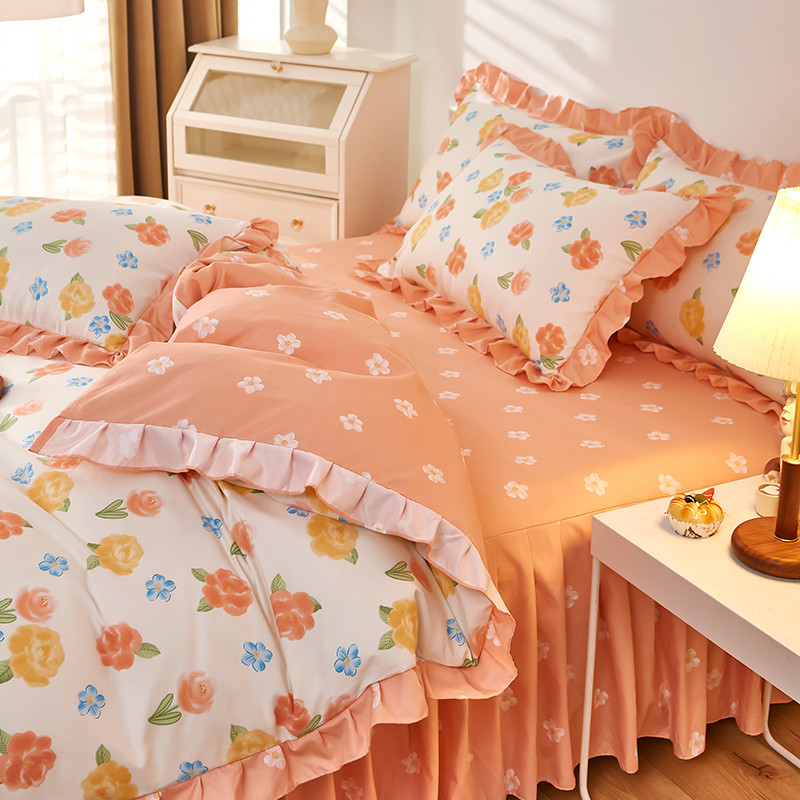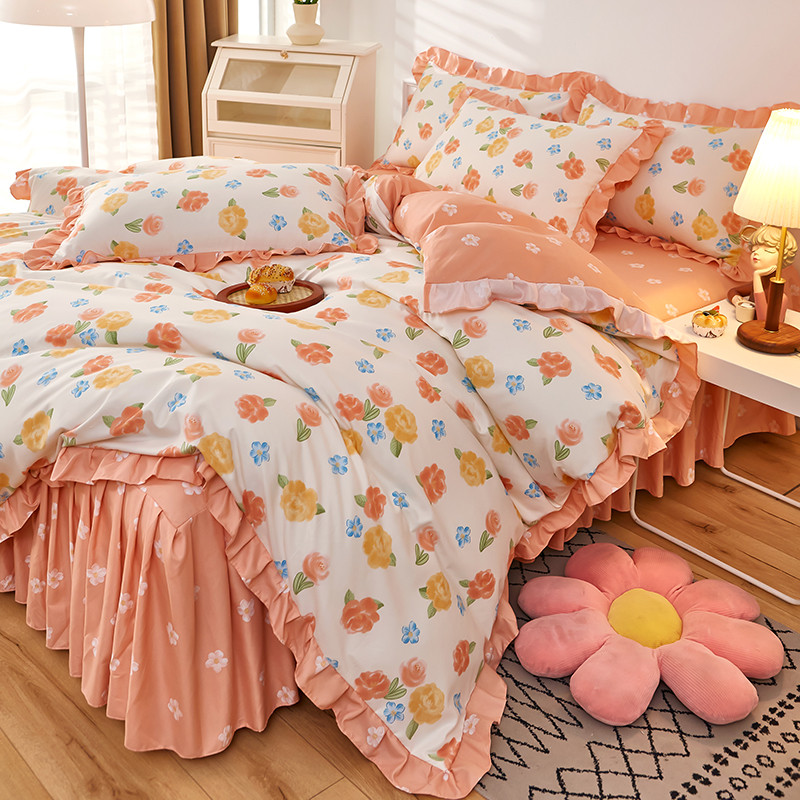 当前位置: 91家纺网 > 商品网购 > 床品套件 > 四件套 > 普通磨毛四件套 > 艾橙家纺 2023新款小清新韩版磨毛花边四件套 伊芙