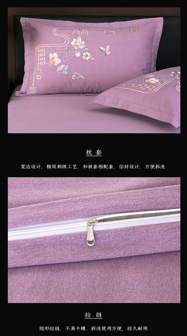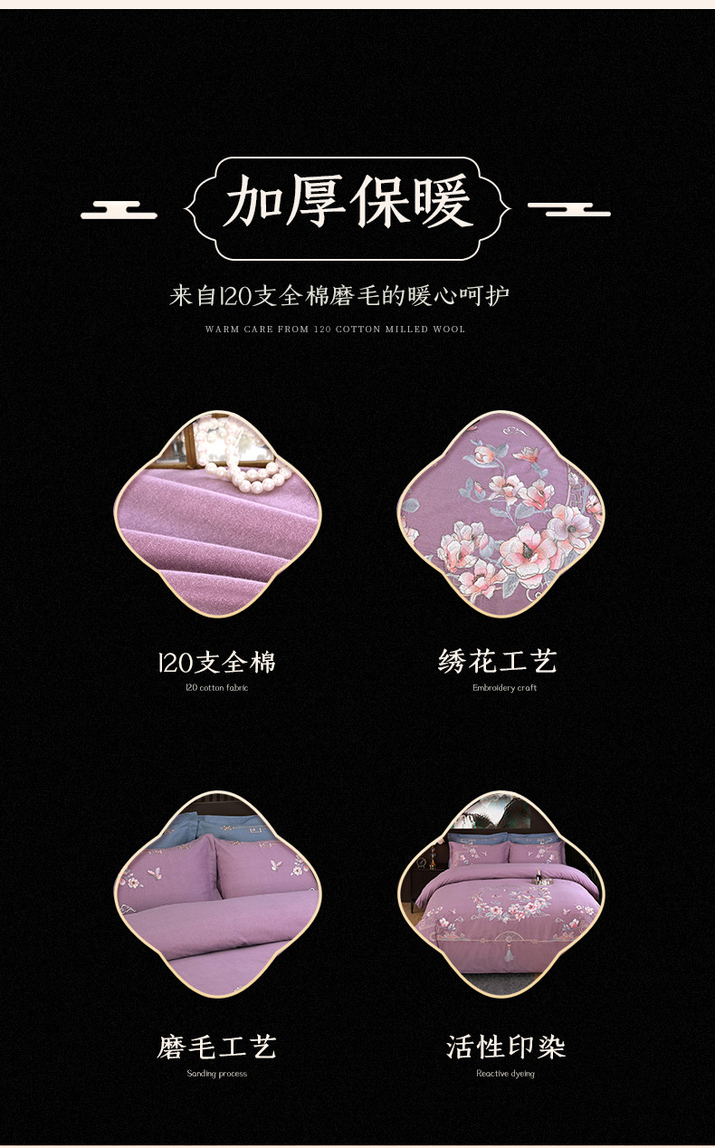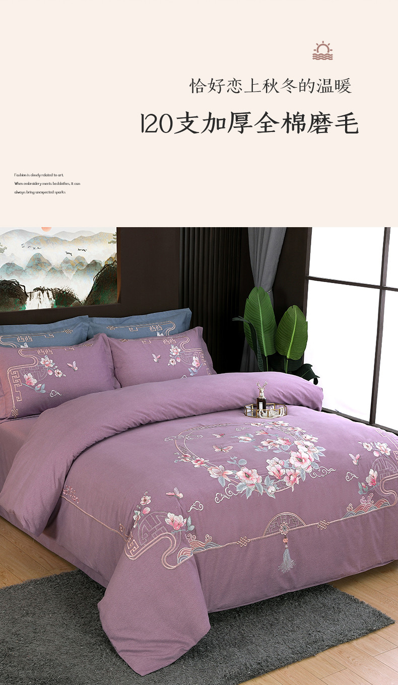浩情国际 2026新款新中式120全棉磨毛巴黎之夜系列四件套 巴黎之夜-贵族紫