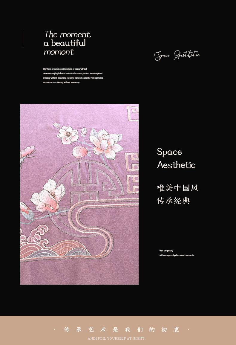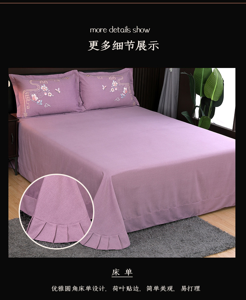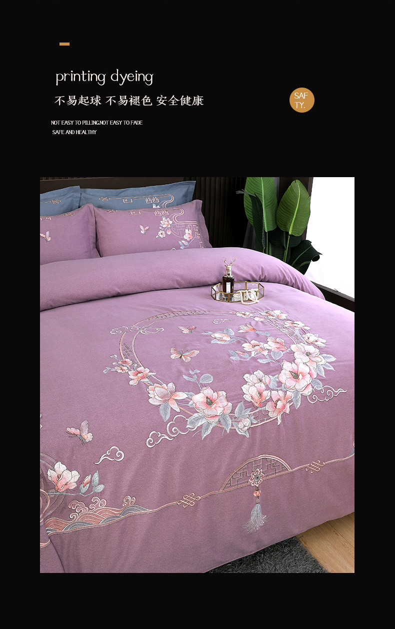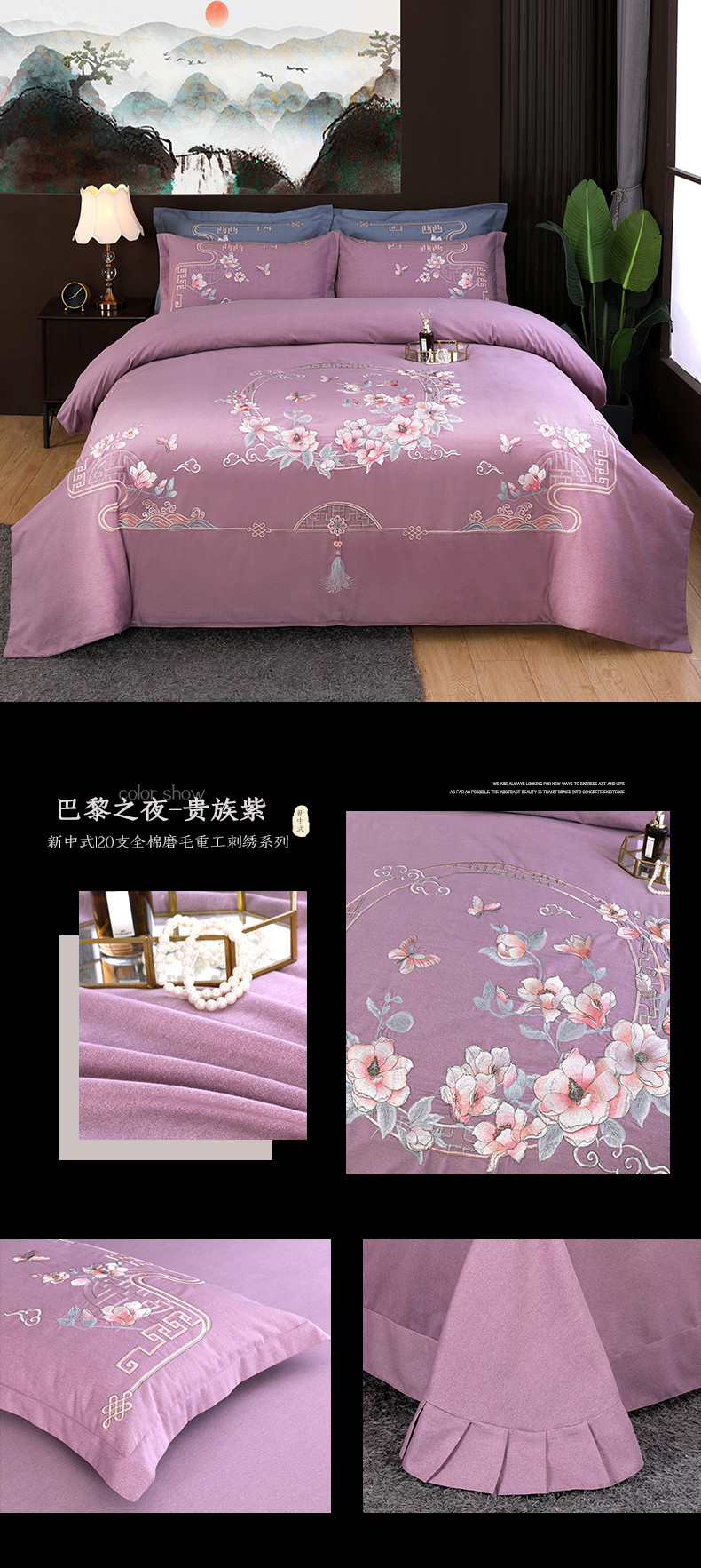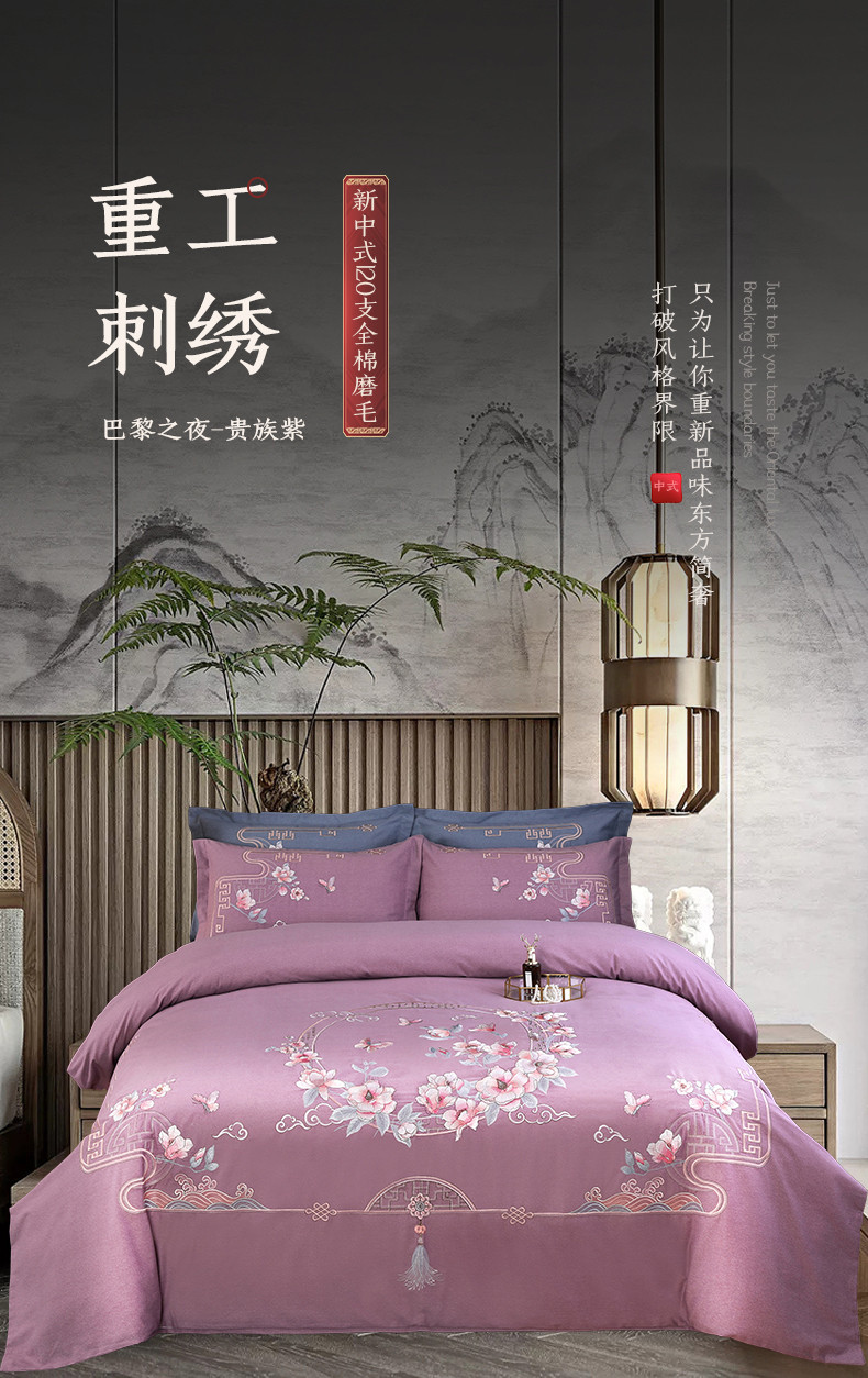 商品名称:浩情国际 2026新款新中式120全棉磨毛巴黎之夜系列四件套 巴黎之夜-贵族紫