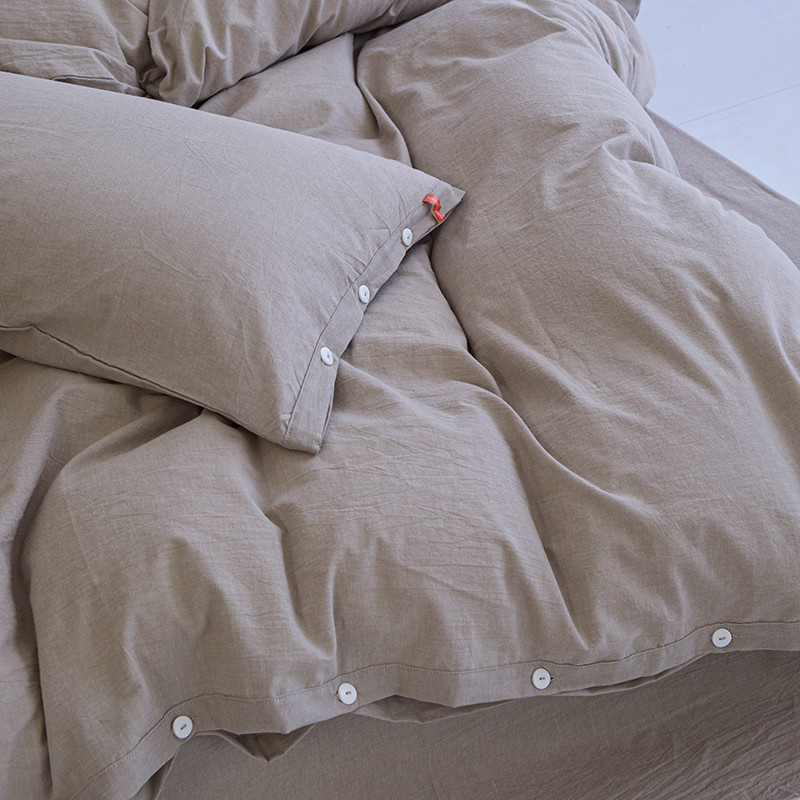 当前位置: 91家纺网 > 商品网购 > 床品套件 > 四件套 > 全棉普通四件套 > 安莱生活 2023年水洗棉全棉色经色纬高支高密纽扣款工艺四件套 米驼