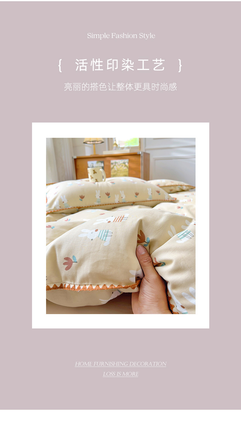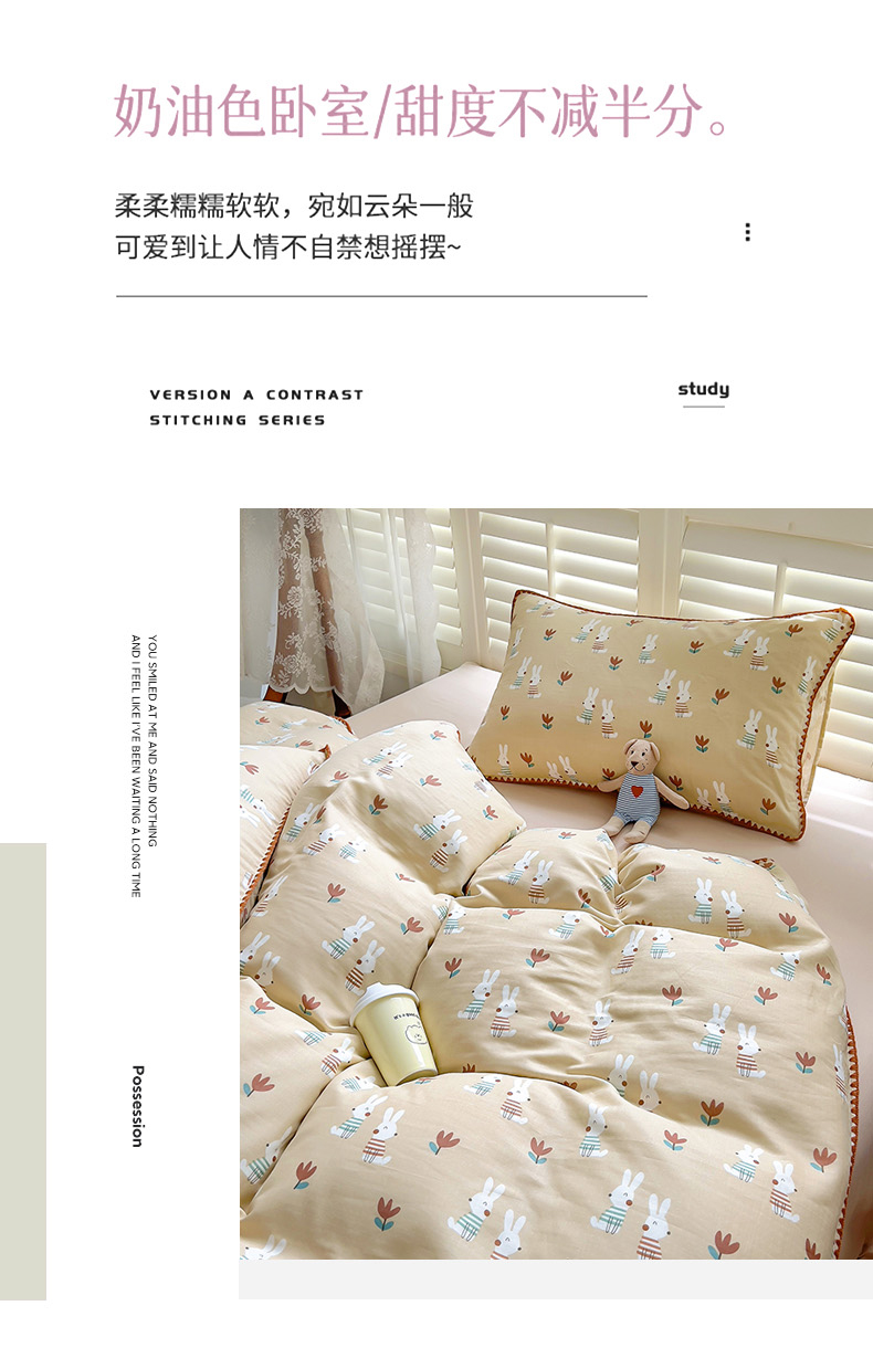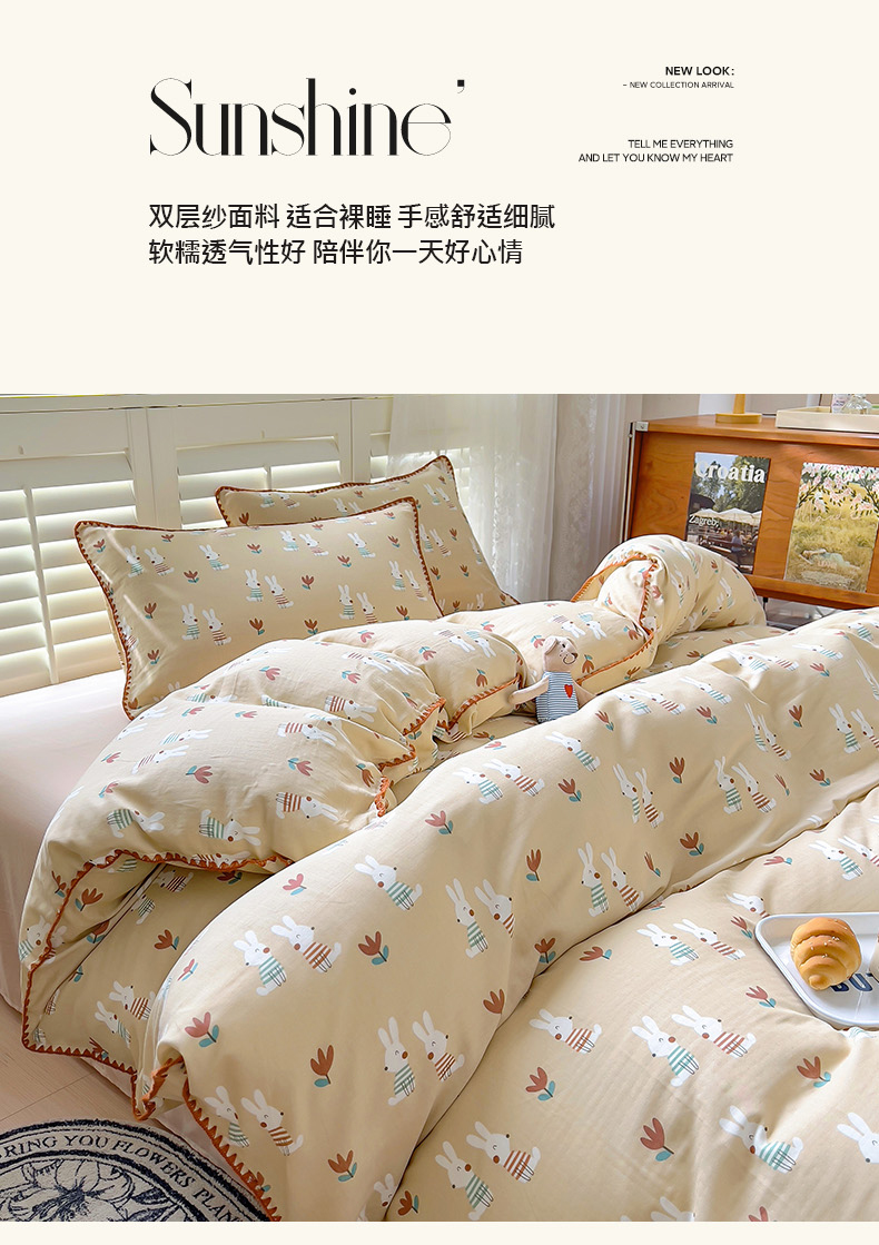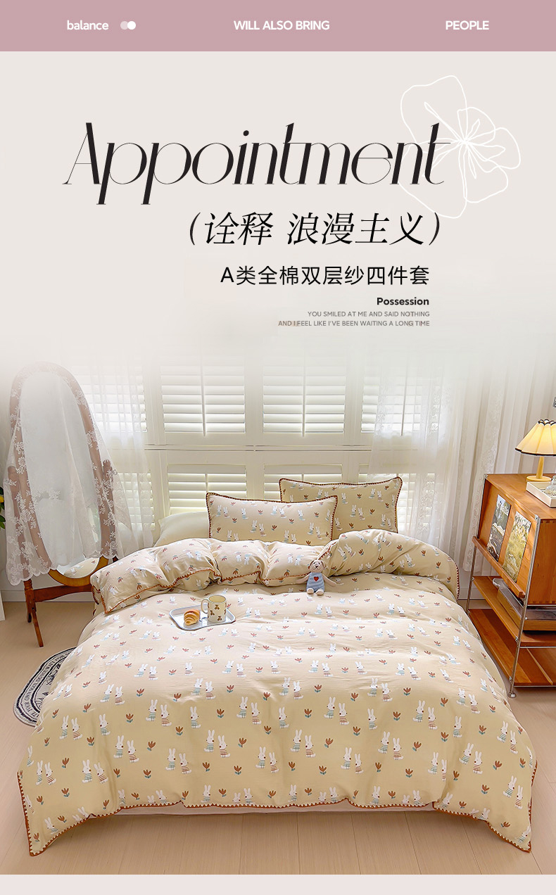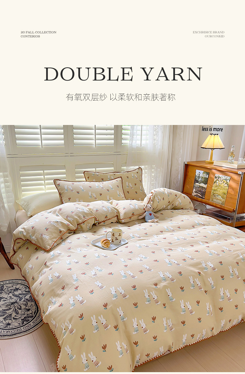 商品名称:田野 2023新款全棉A类贝壳边双层纱四件套 波波兔