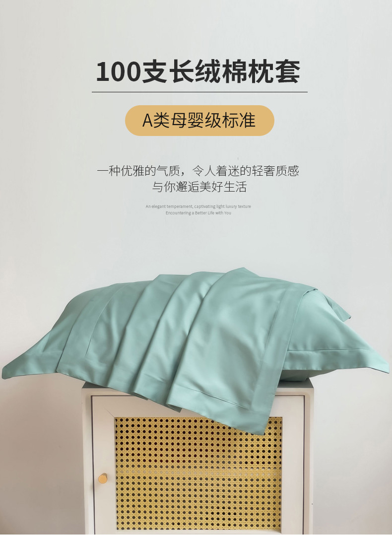 商品名称:金丝鸟 2023新款全棉100支长绒棉单品枕套 月光绿