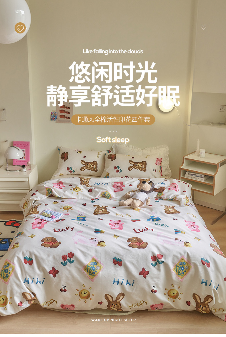 当前位置: 91家纺网 > 商品网购 > 床品套件 > 四件套 > 全棉普通四件套 > 窝米 2023新款13370全棉卡通风系列四件套 友趣派对