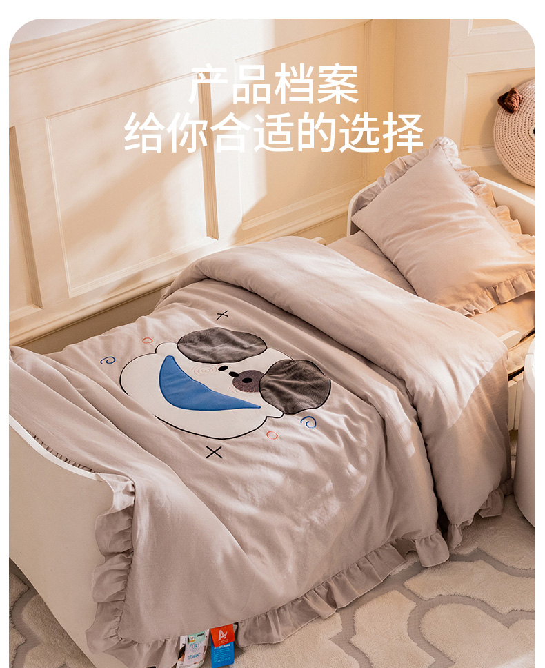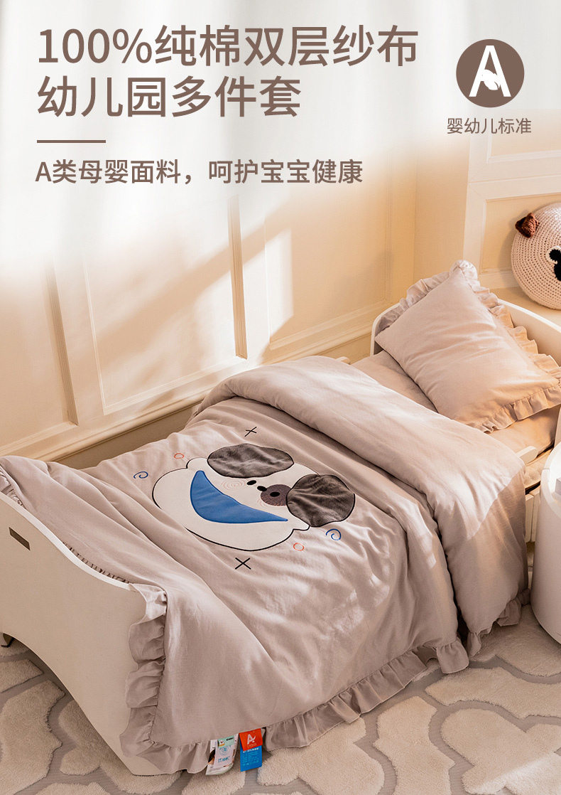 当前位置: 91家纺网 > 商品网购 > 床品套件 > 三件套 > 喜多兔 2023新款纯棉双层纱绣花幼儿园三件套 灰色Q小狗