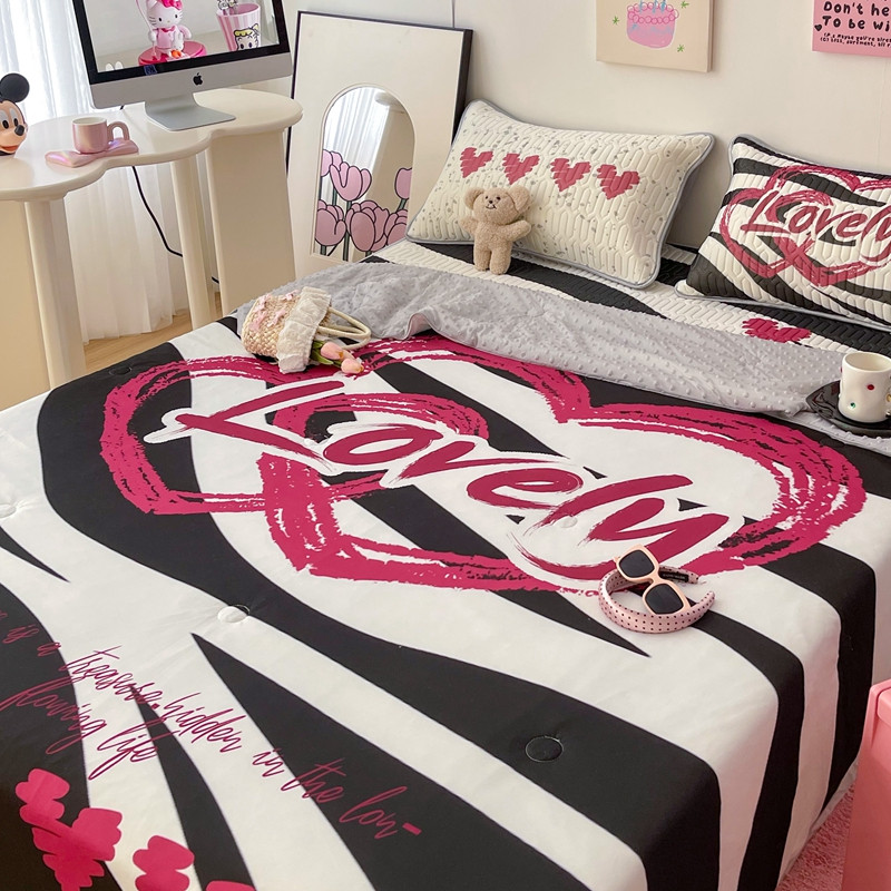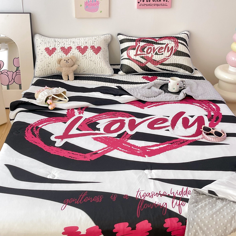 当前位置: 91家纺网 > 商品网购 > 床上用品 > 凉席 > 乳胶凉席 > 顾里家纺 2023新款凉席豆豆夏被套件 斑马爱心