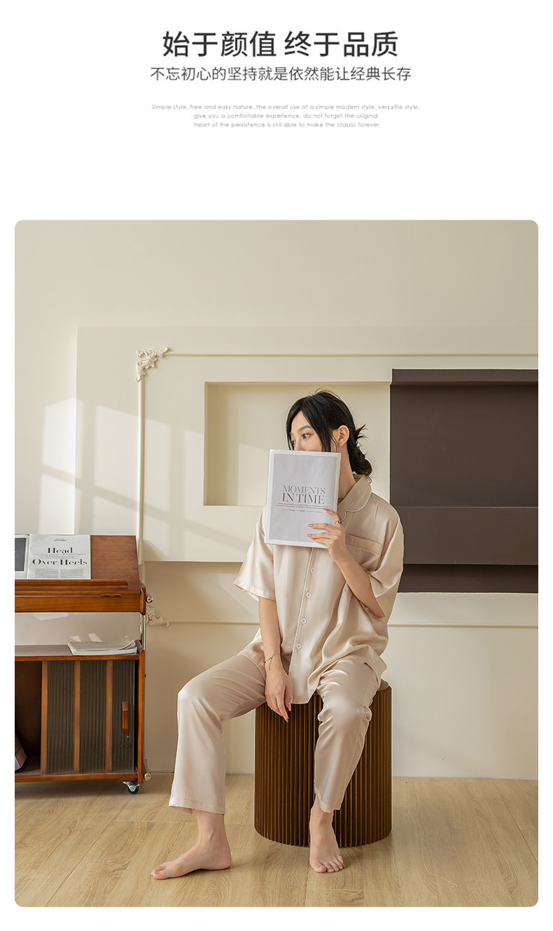 都市轻奢天丝棉/天丝家居服套装可外穿韩版宽松情侣睡衣 象牙白--天丝