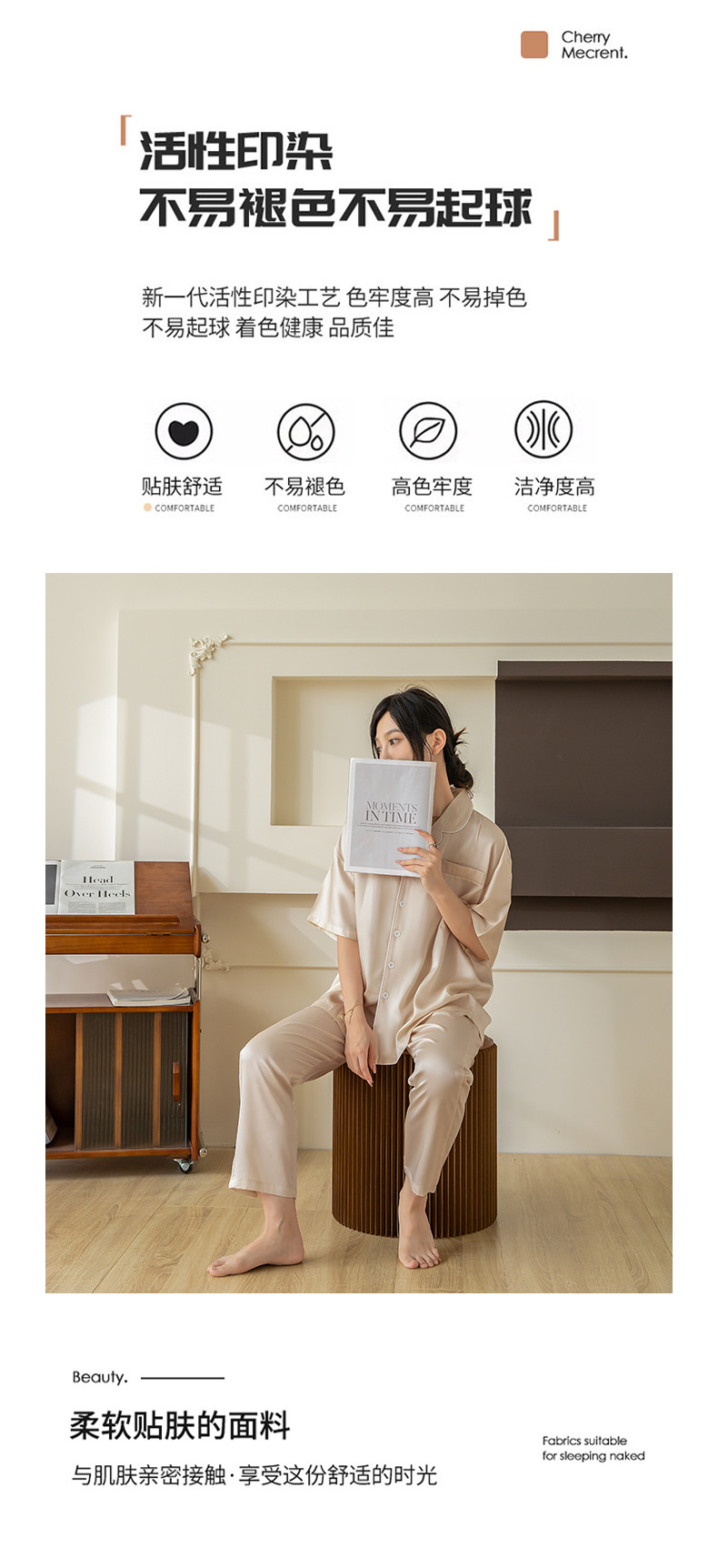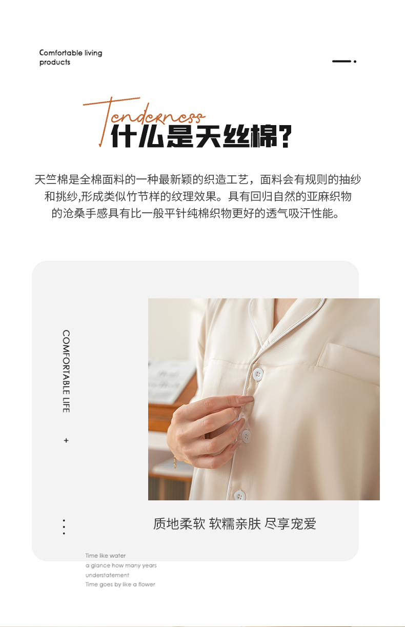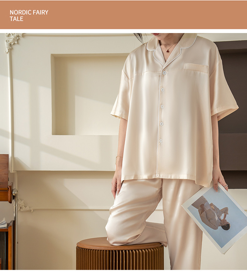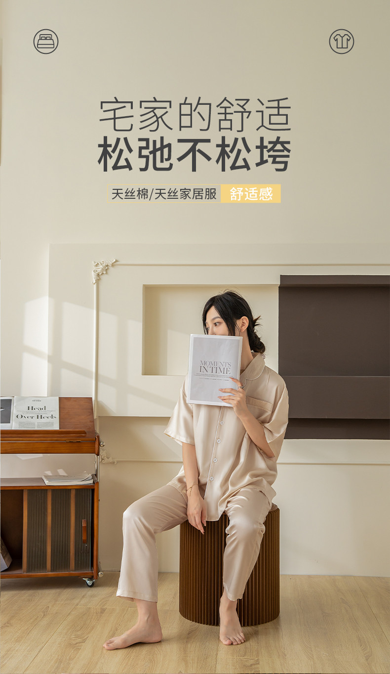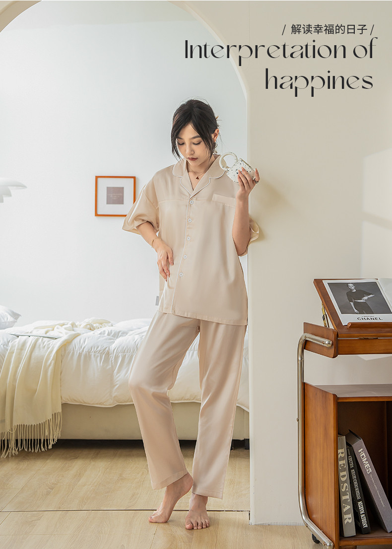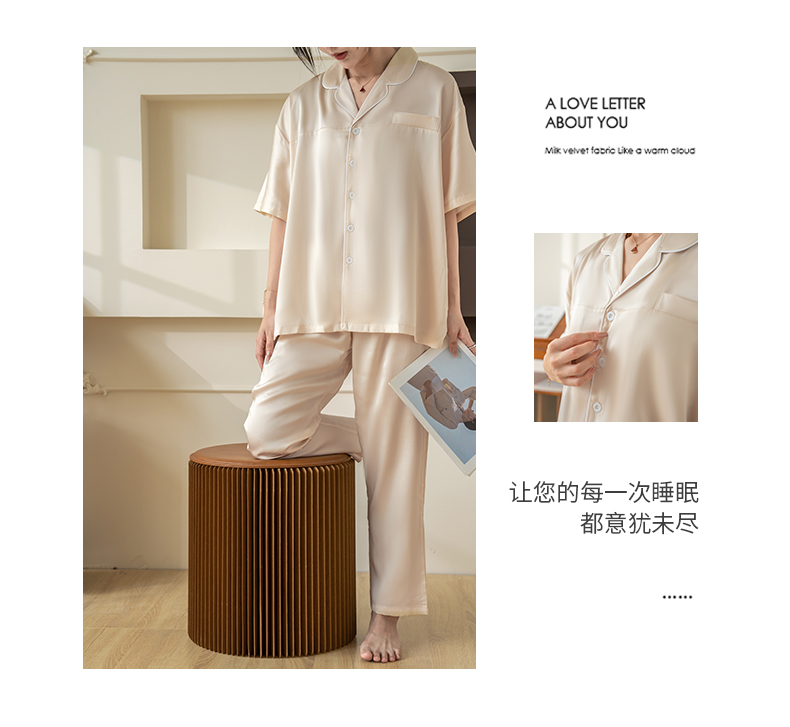 商品名称:都市轻奢天丝棉/天丝家居服套装可外穿韩版宽松情侣睡衣 象牙白--天丝