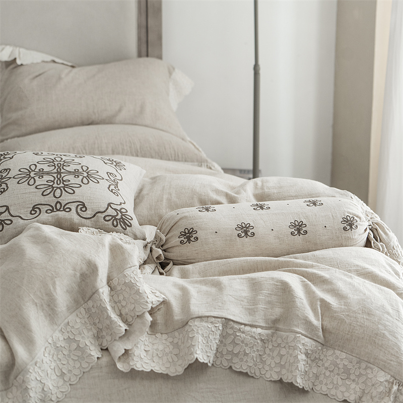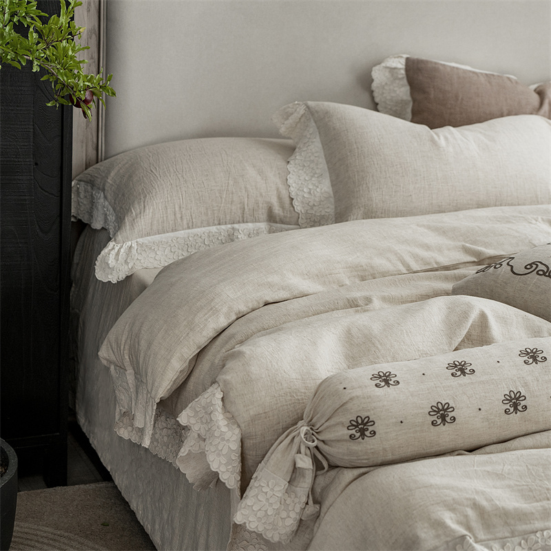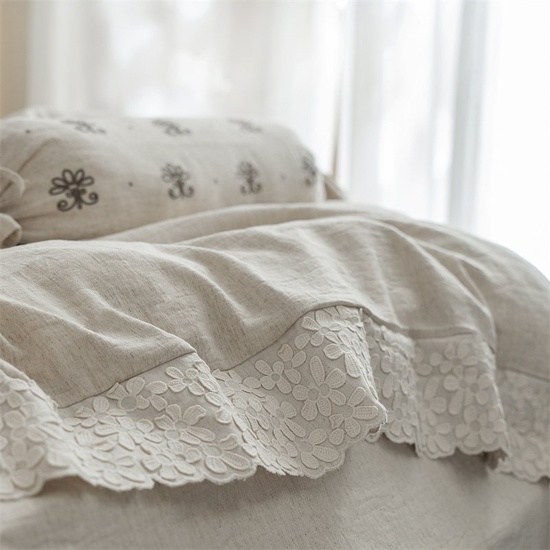 当前位置: 91家纺网 > 商品网购 > 床品套件 > 四件套 > 普通磨毛四件套 > 子和 2023新款麻棉立体宽边蕾丝优雅浪漫四季款如花在野-本白