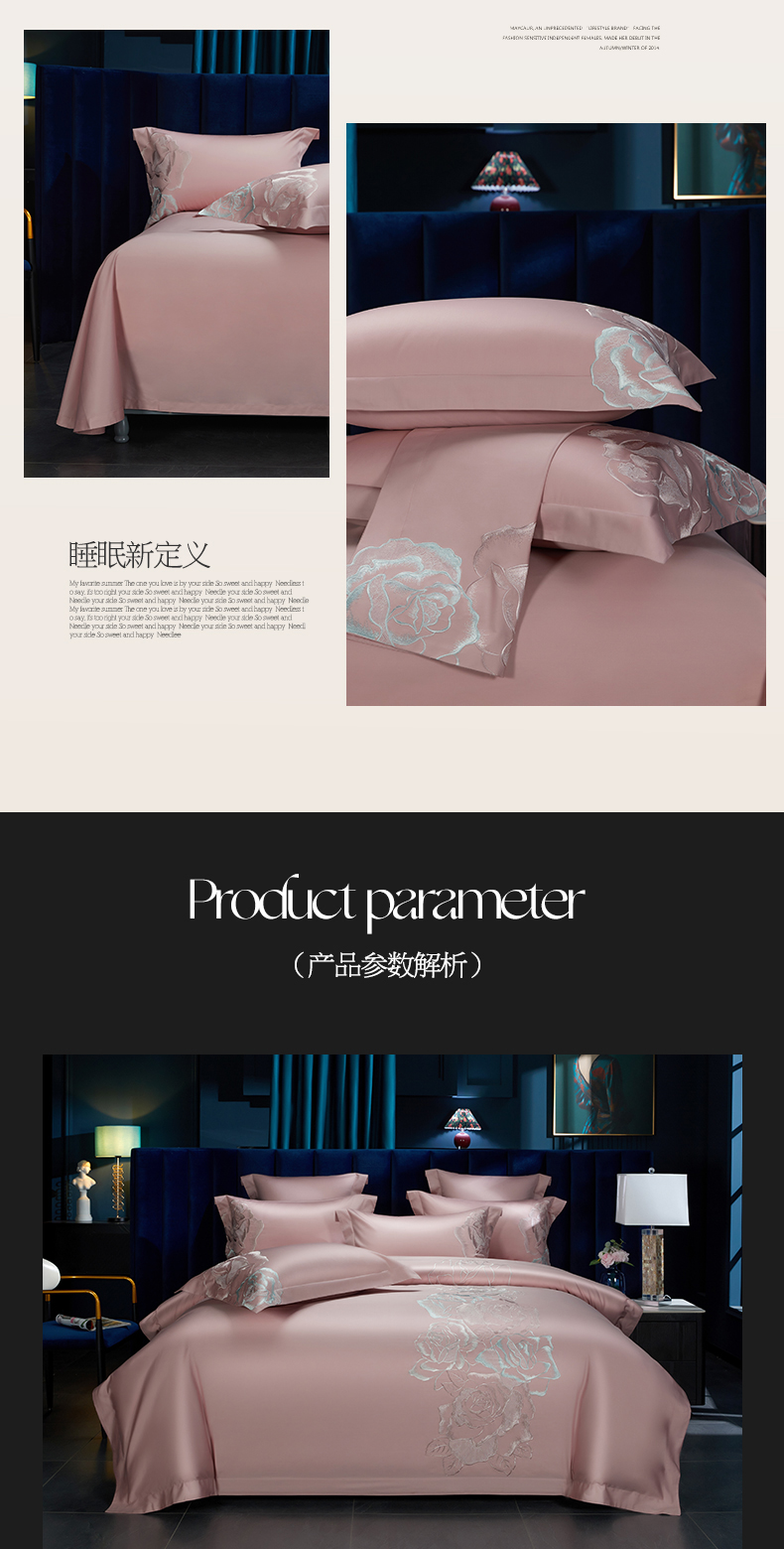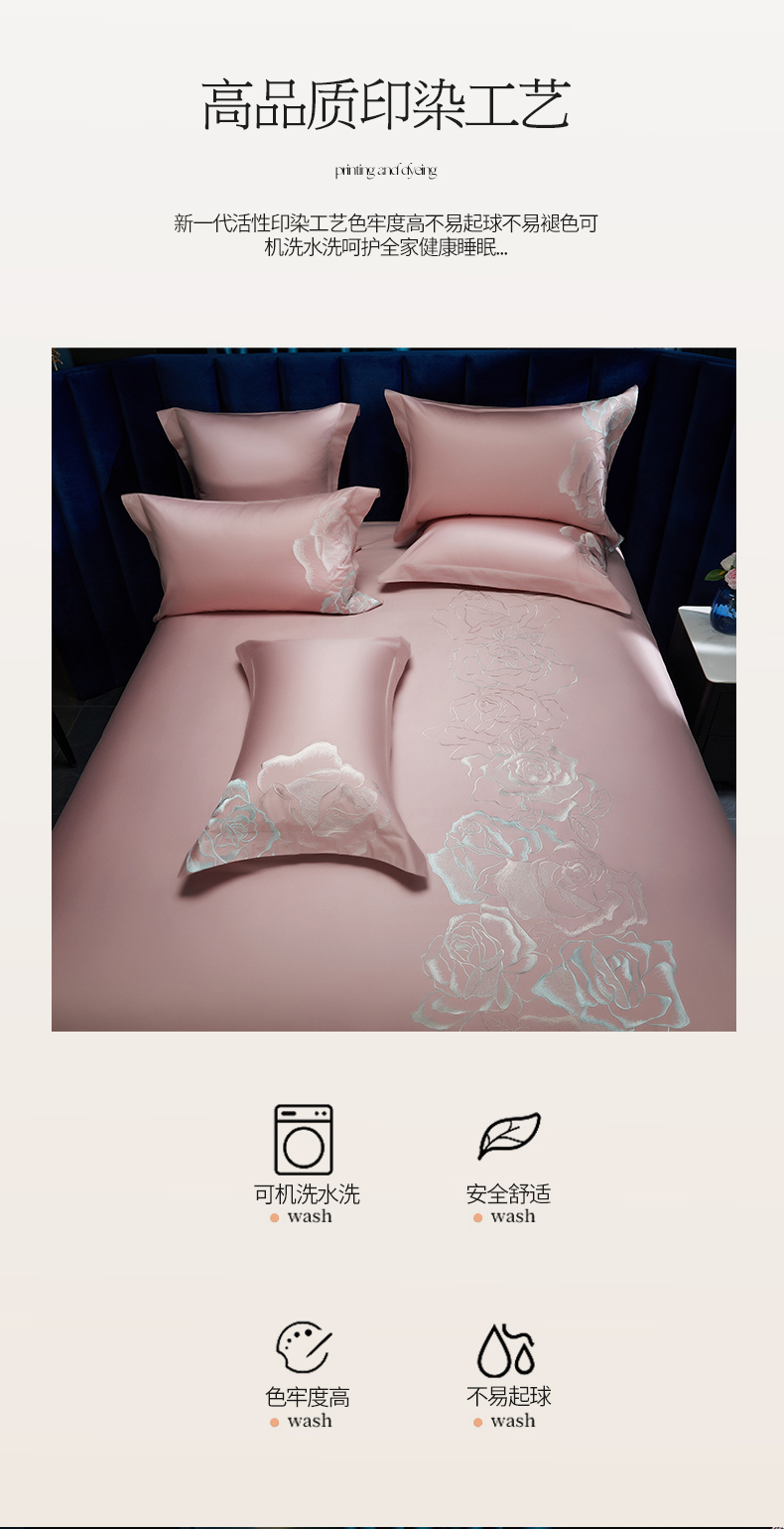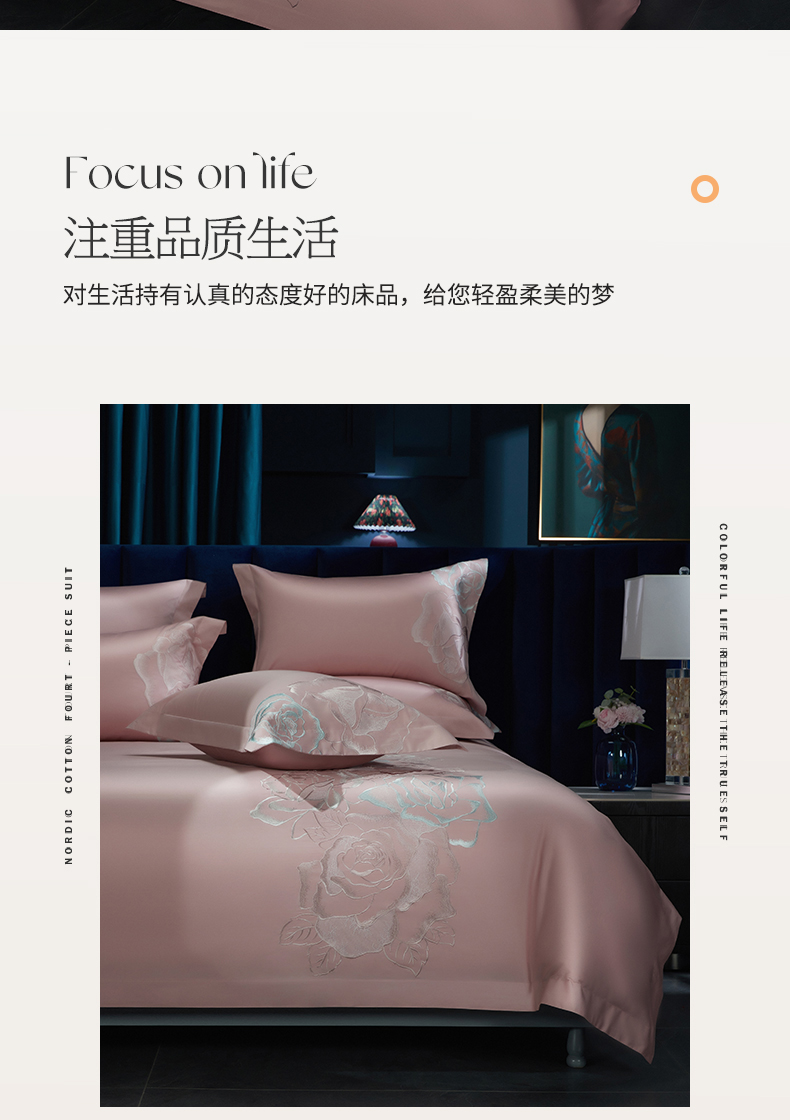 商品名称:美娘阁 2023新款秋冬双股长绒棉刺绣家居款四件套-玫瑰园 玫瑰园 藕粉