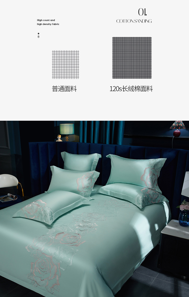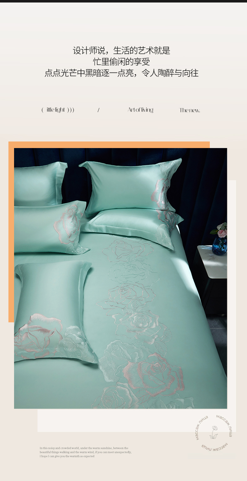 (总)美娘阁 2025新款长绒棉全棉提花居家款四件套-安露丝,安露丝(粉),安露丝(绿)