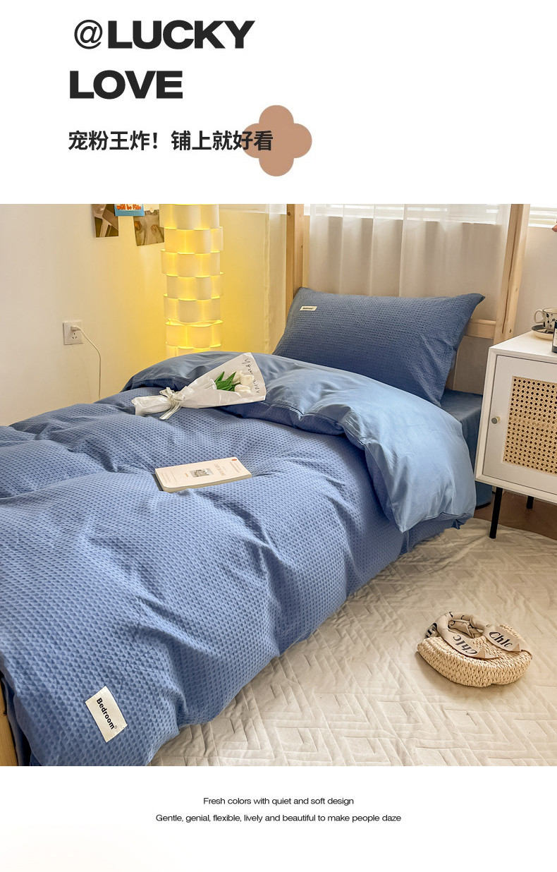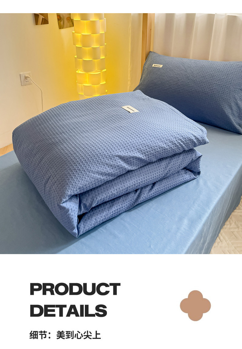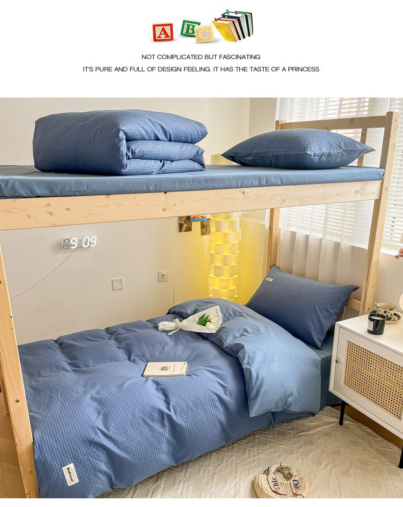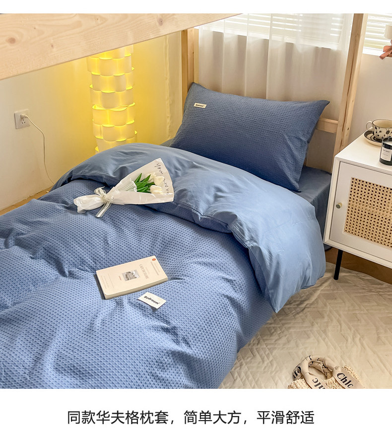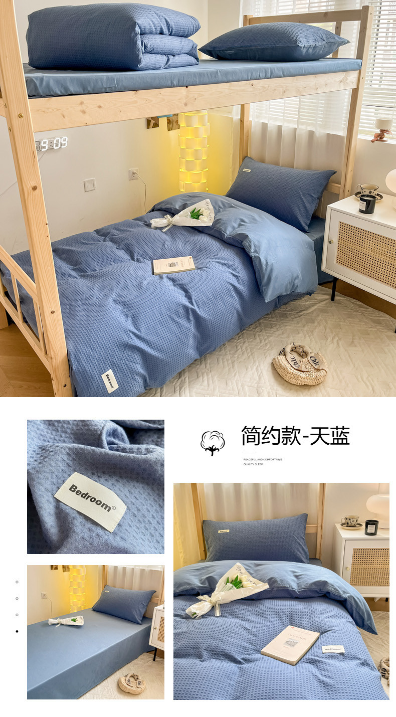 当前位置: 91家纺网 > 商品网购 > 床品套件 > 四件套 > 全棉普通四件套 > 眠博士 2023新款全棉华夫格学生上下铺四件套 简约款-天蓝