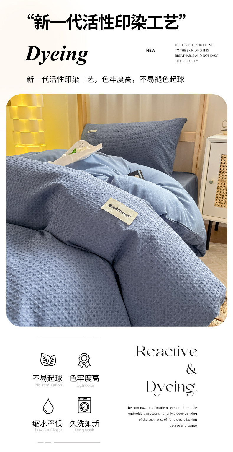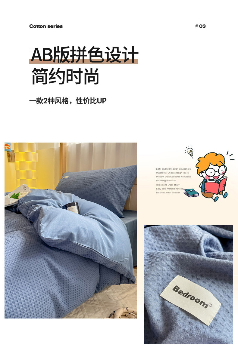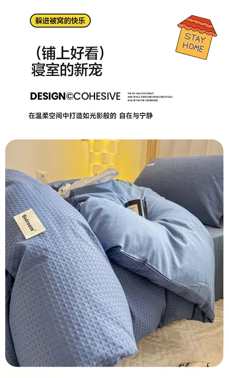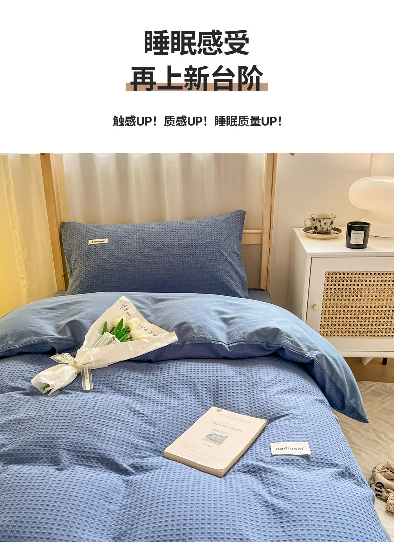 当前位置: 91家纺网 > 商品网购 > 床品套件 > 四件套 > 全棉普通四件套 > 眠博士 2023新款全棉华夫格学生上下铺四件套 简约款-天蓝