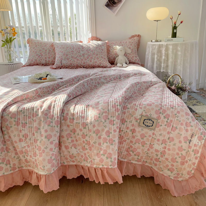 菊上家纺 2023秋冬新品法式花边全棉单床盖 玫瑰粉
