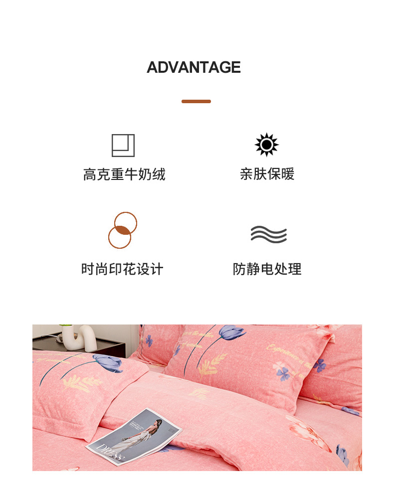 当前位置: 91家纺网 > 商品网购 > 床品套件 > 四件套 > 牛奶绒四件套 > 新款230克高克重印花牛奶绒四件套定做定制尺寸 花开那年