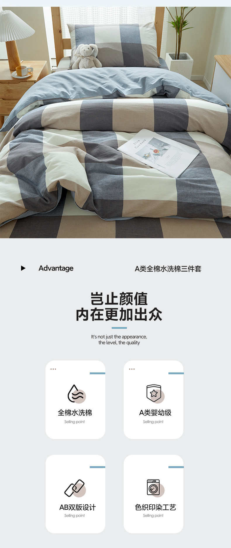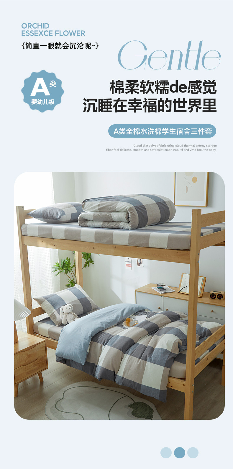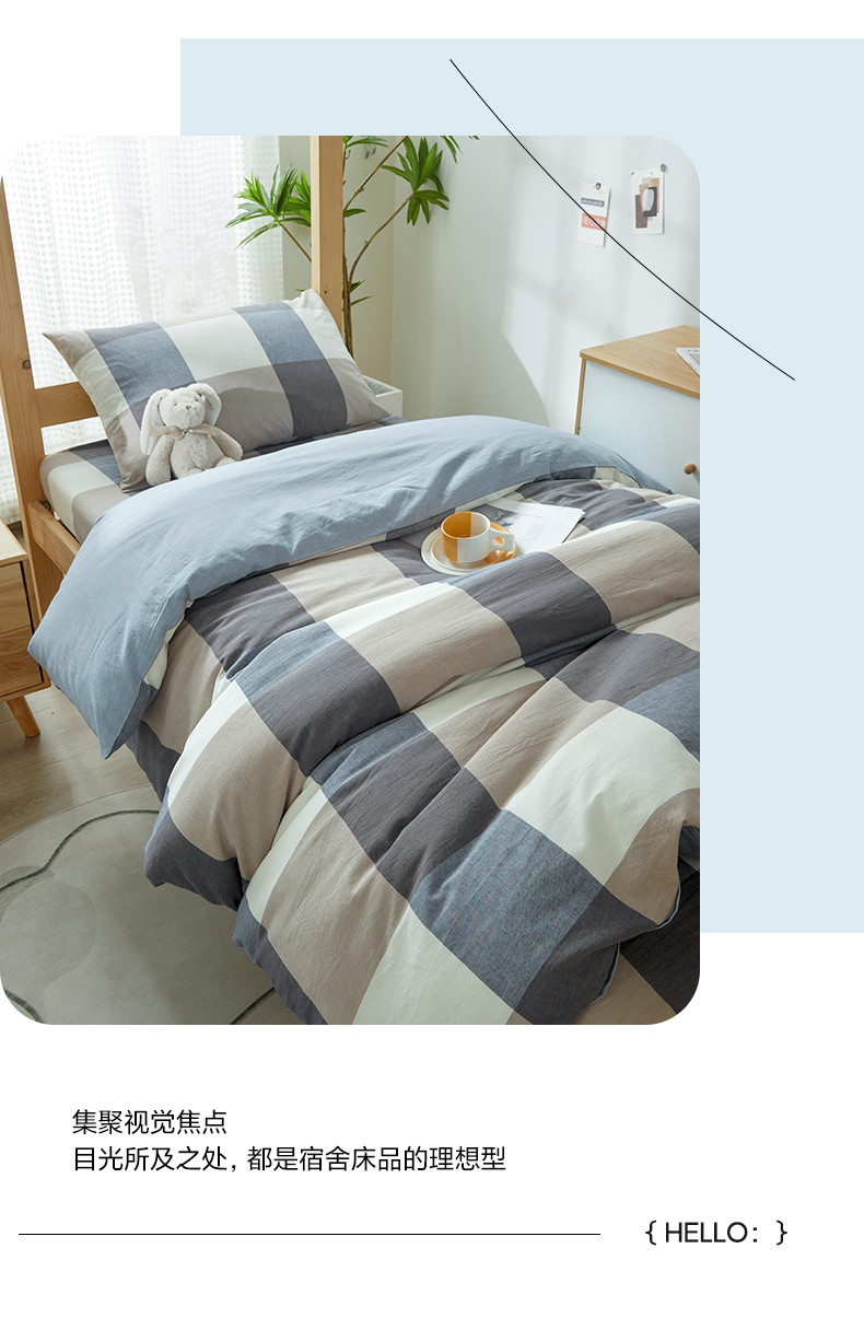 当前位置: 91家纺网 > 商品网购 > 床品套件 > 三件套 > 九沐良品 新款A类全棉水洗棉宿舍三件套 米棕丈青