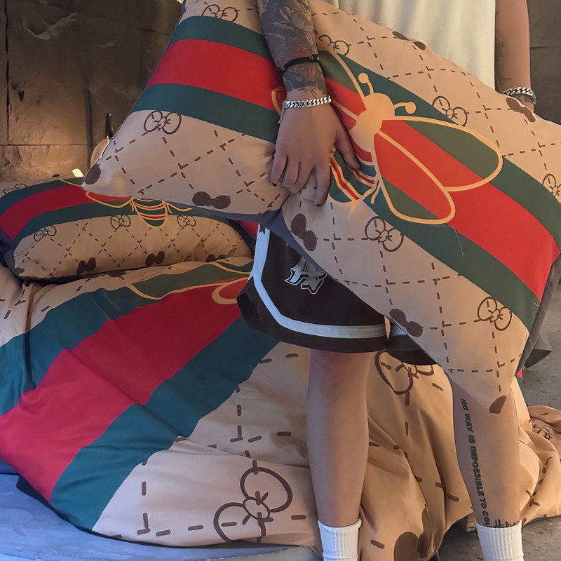 商品名称:色鬼布艺 2023新款双面磨毛数码印花四件套 磨毛大黄蜂