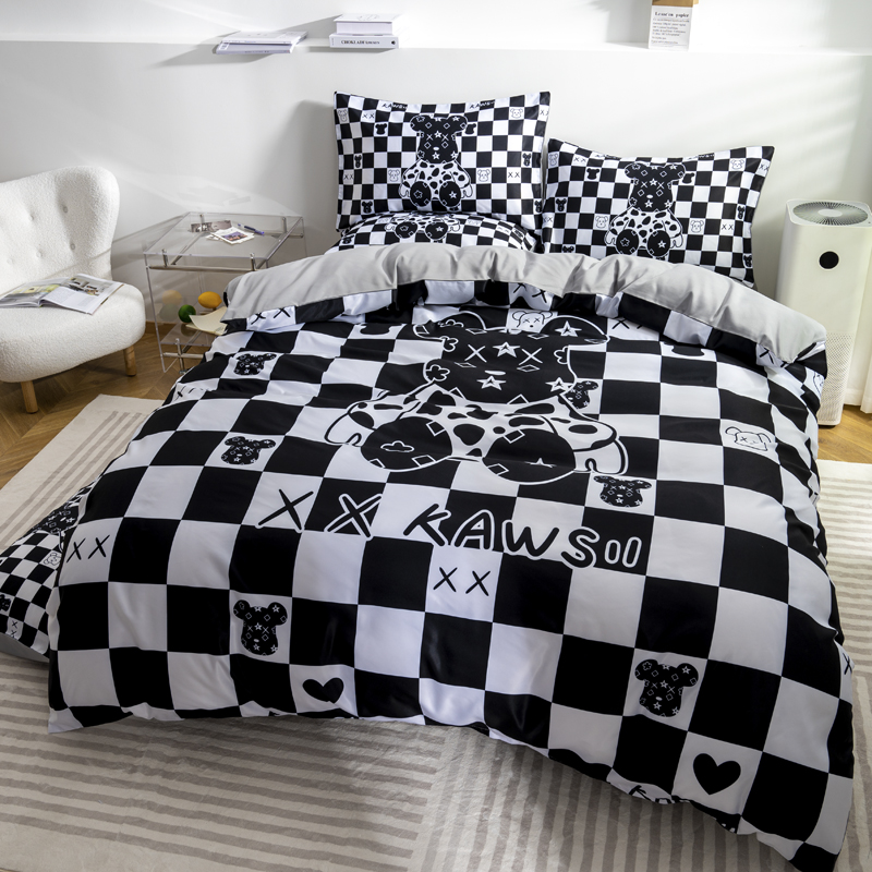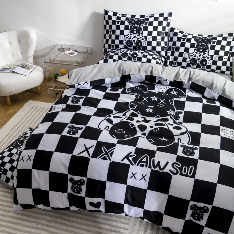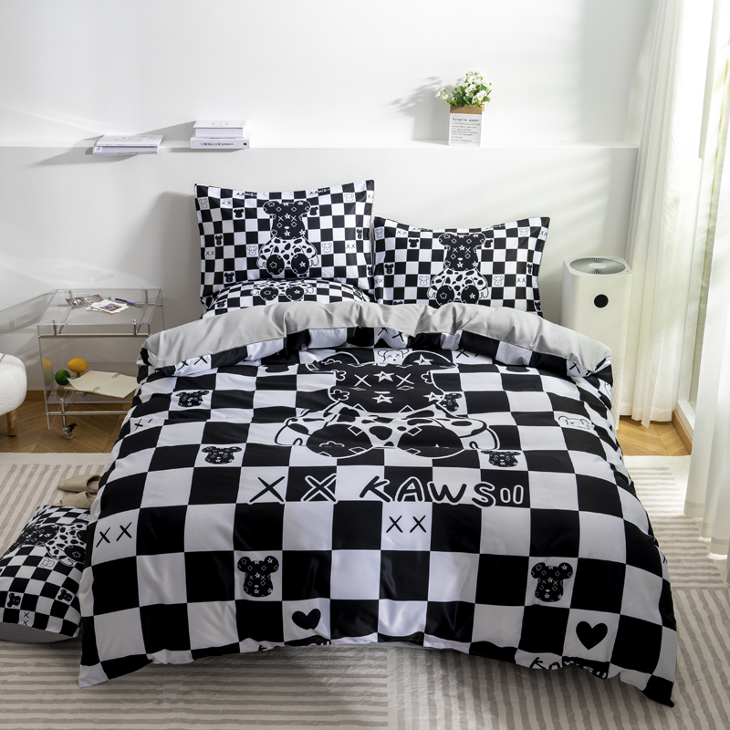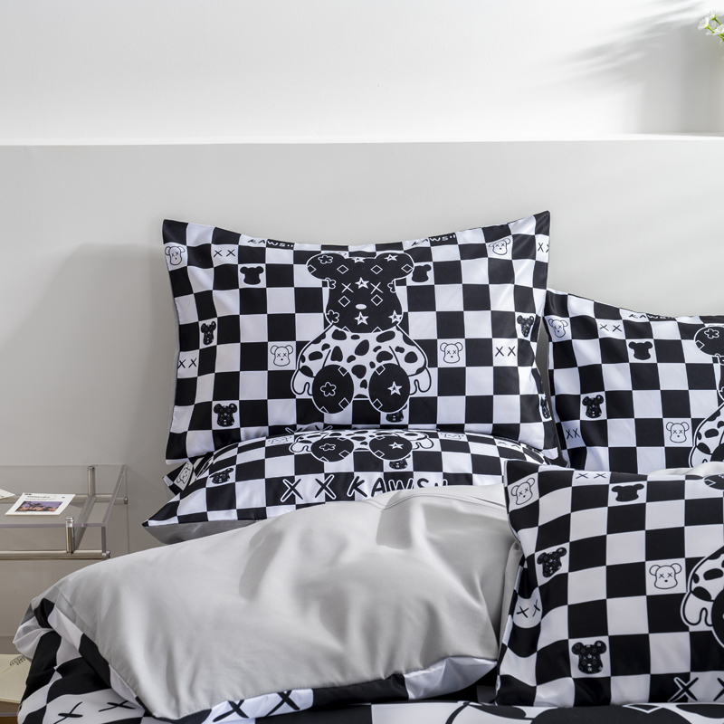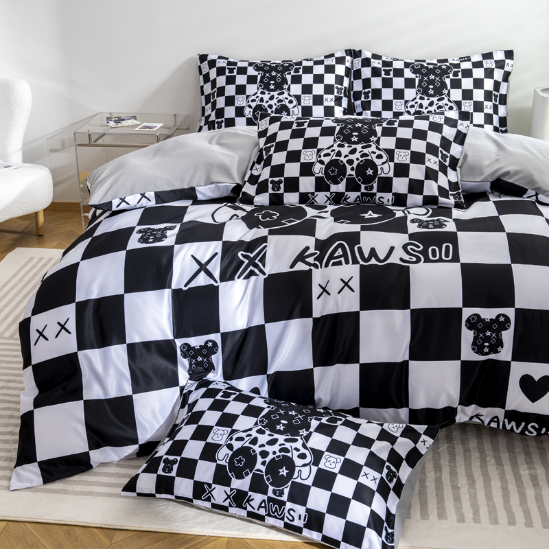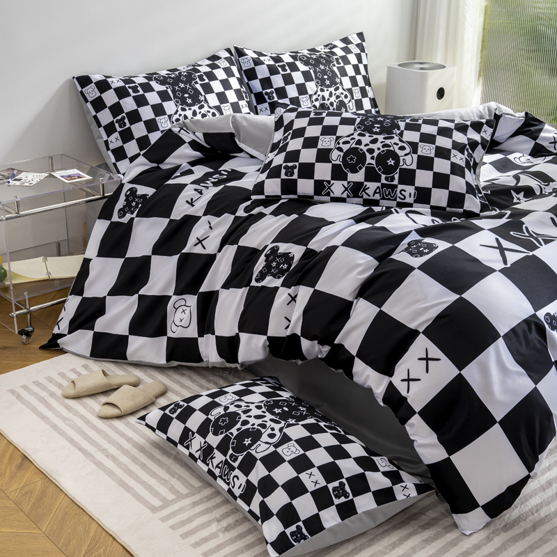 商品名称:色鬼布艺 2023新款水洗天丝四件套 小熊格子 黑