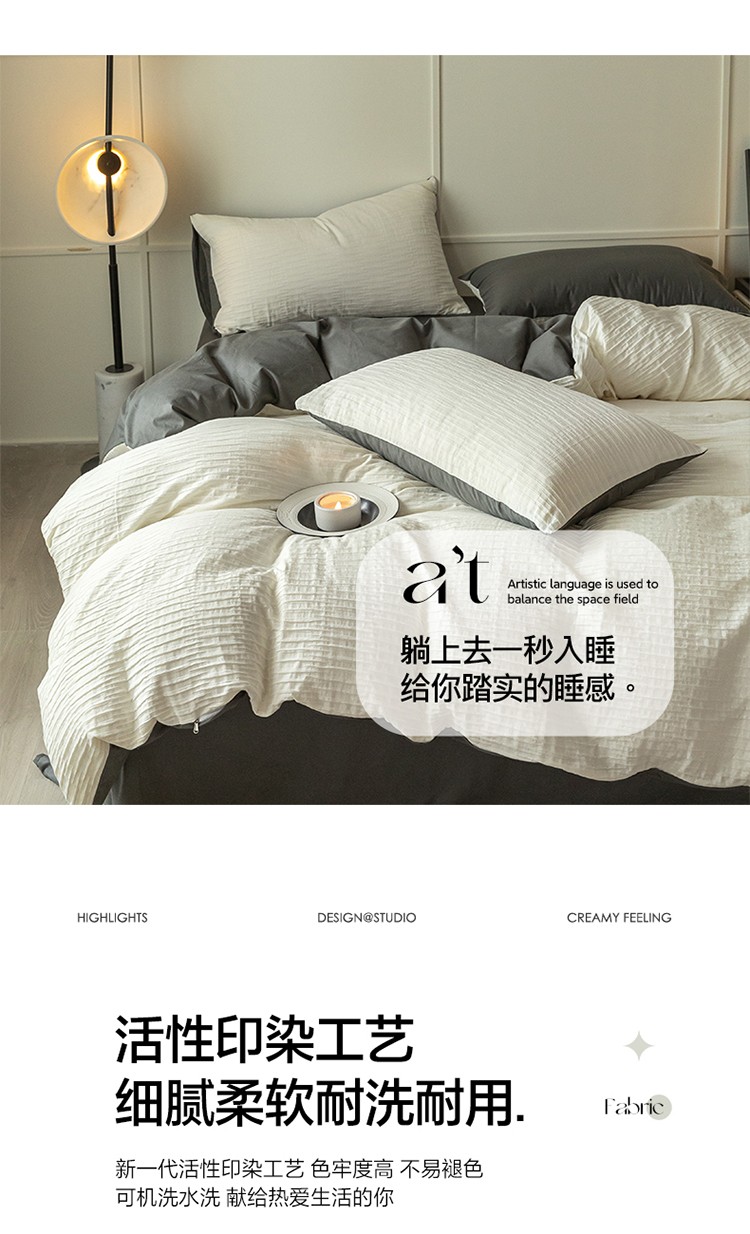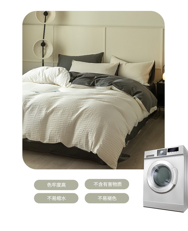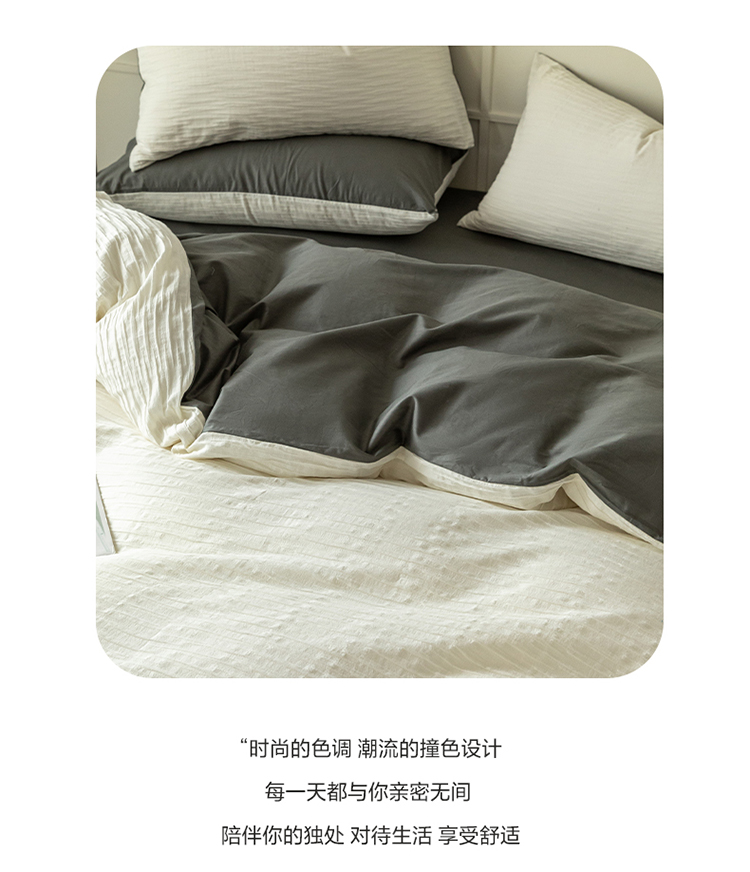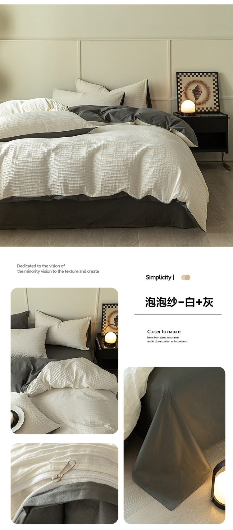 商品名称:雅居纺2023新款系全棉泡泡纱四件套 泡泡纱-白+灰