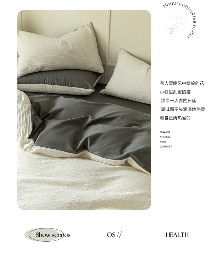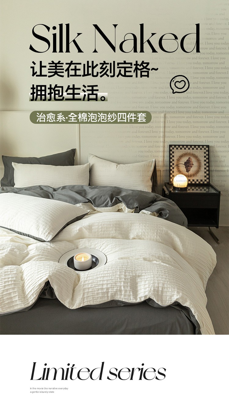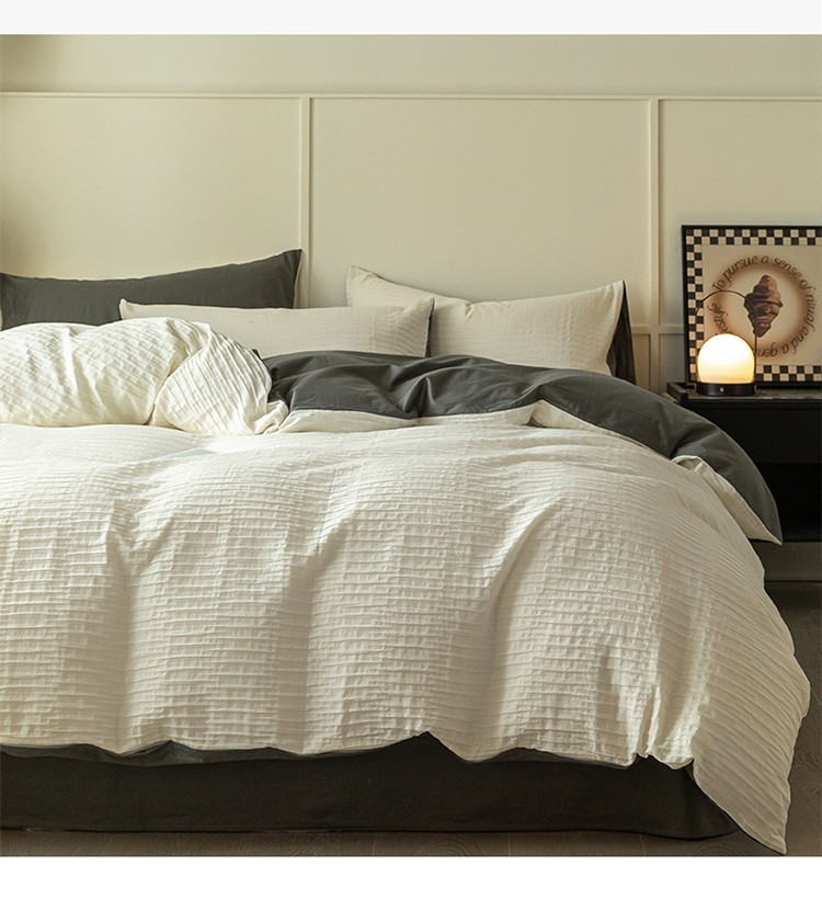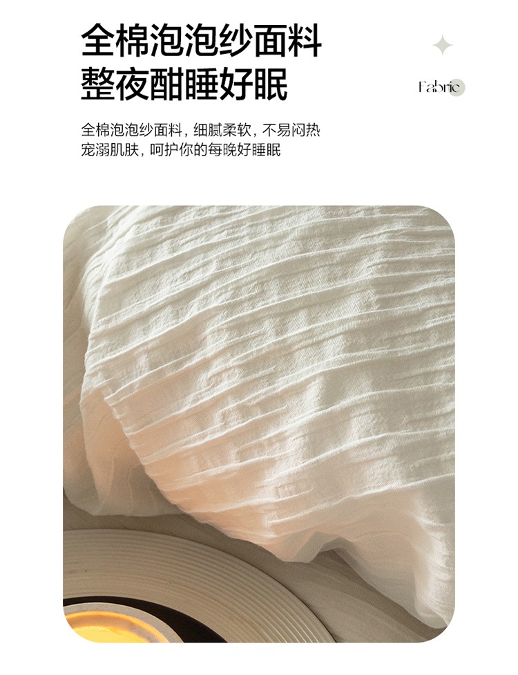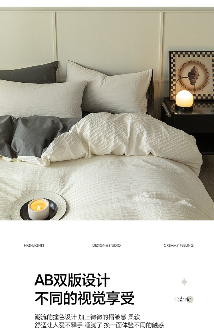 商品名称:雅居纺2023新款系全棉泡泡纱四件套 泡泡纱-白+灰