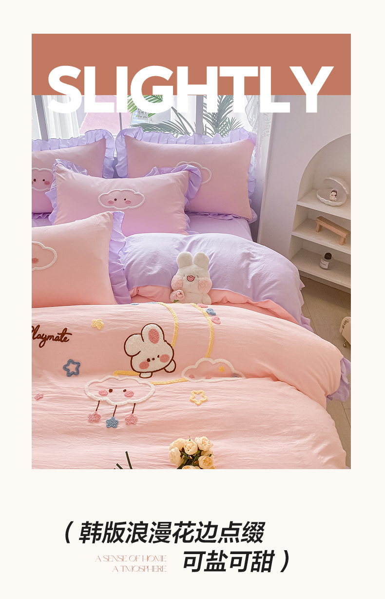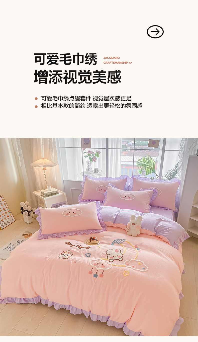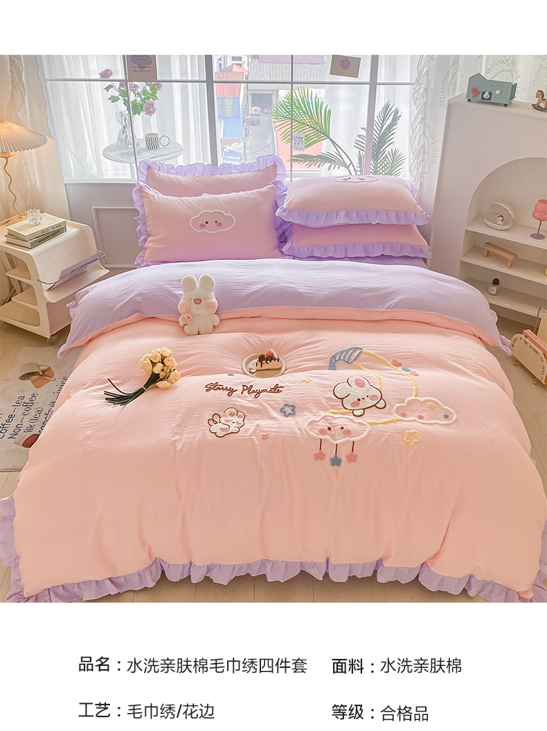 当前位置: 91家纺网 > 商品网购 > 床品套件 > 四件套 > 化纤活性四件套 > 易禾家纺 2024新款水洗棉毛巾绣晚安梦四件套专版花型 晚安梦-粉紫
