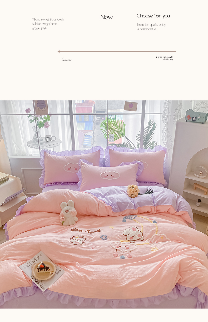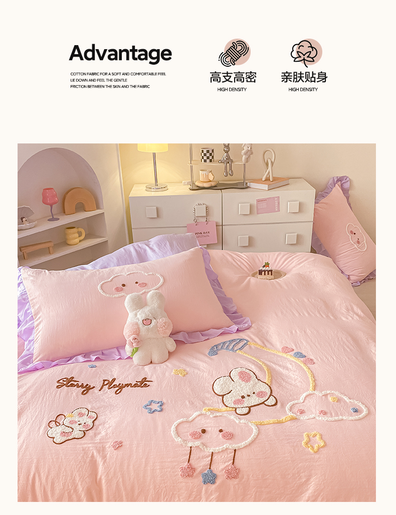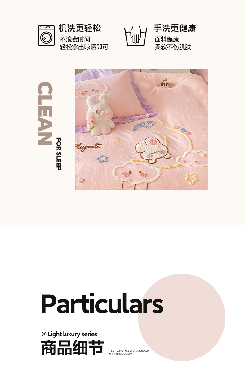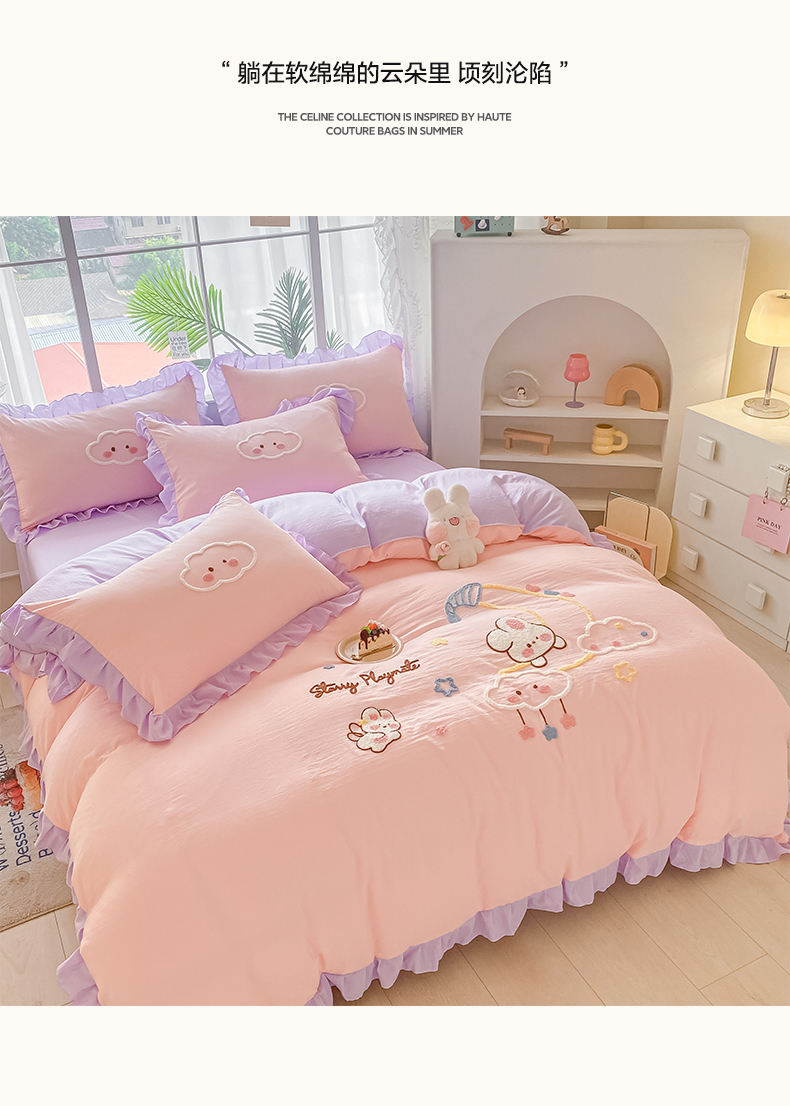 当前位置: 91家纺网 > 商品网购 > 床品套件 > 四件套 > 化纤活性四件套 > 易禾家纺 2024新款水洗棉毛巾绣晚安梦四件套专版花型 晚安梦-粉紫