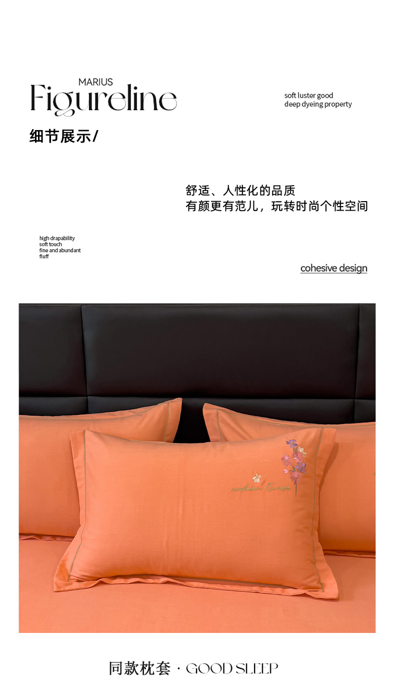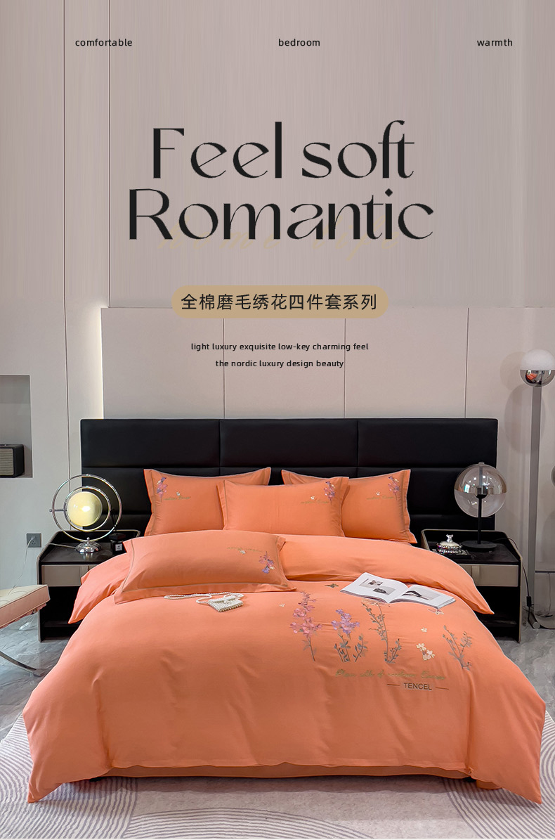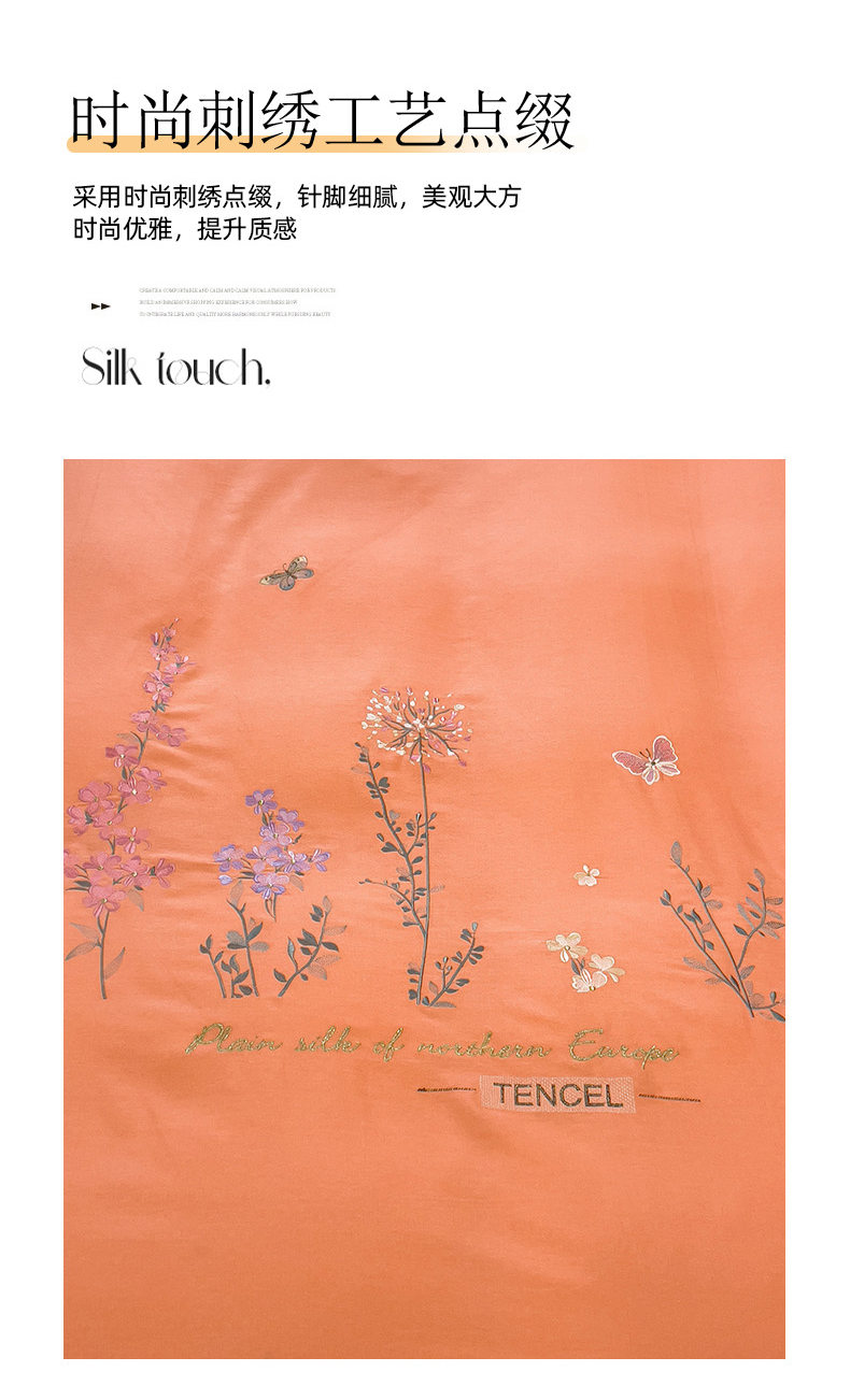 商品名称:云锦2023新款全棉磨毛绣花四件套系列 漫野花香橘色